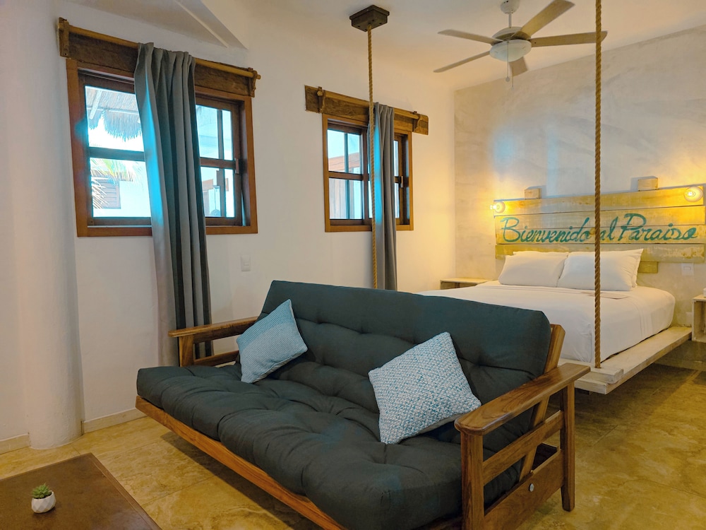 As you step into 40 Cañones, you are greeted by the allure of rustic-chic rooms that seamlessly blend modern sophistication with coastal charm. Each room is meticulously designed to provide the utmost comfort, ensuring that you and your loved one feel embraced by the warmth of home in this tropical escape.