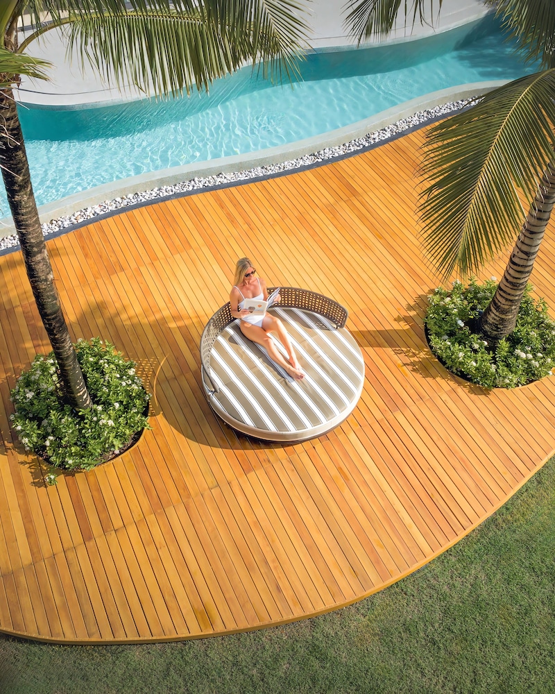 From the moment you arrive, the resort’s exceptional services cater to your every need. A dedicated 24-hour front desk ensures smooth check-in and check-out, while convenient airport transportation takes the stress out of travel. Complimentary bikes are available for guests who wish to explore the charming island, and a state-of-the-art fitness center keeps you active during your stay. And when it’s time to unwind, a refreshing outdoor swimming pool awaits.
