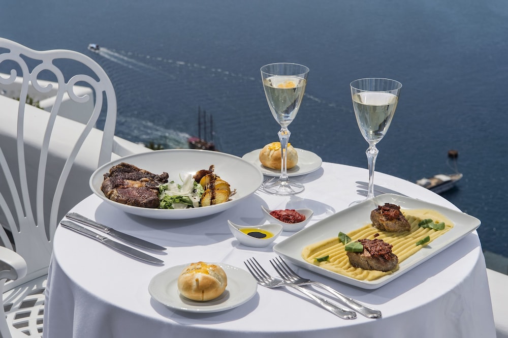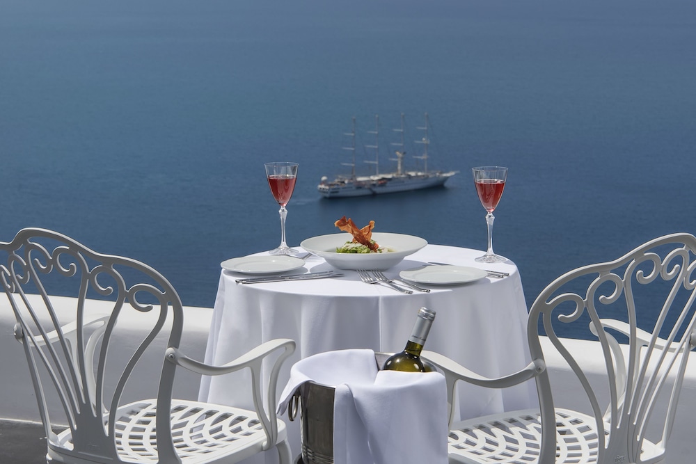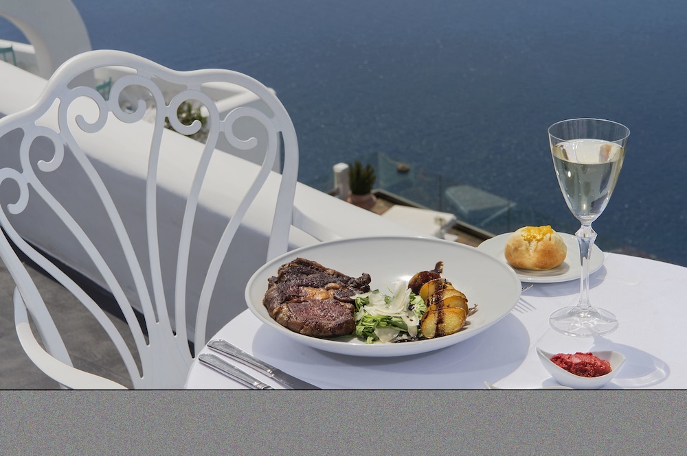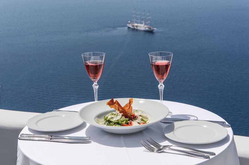 The upper terrace of the hotel is home to the renowned Esperisma Bar-Restaurant. Here, you’ll find the most famous meeting point in Fira, offering unlimited views and elegant culinary delights. It’s a place where your taste buds will be as enchanted as your surroundings.