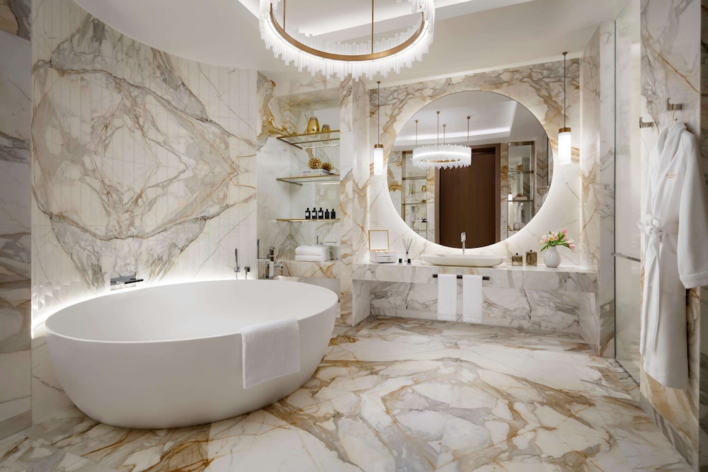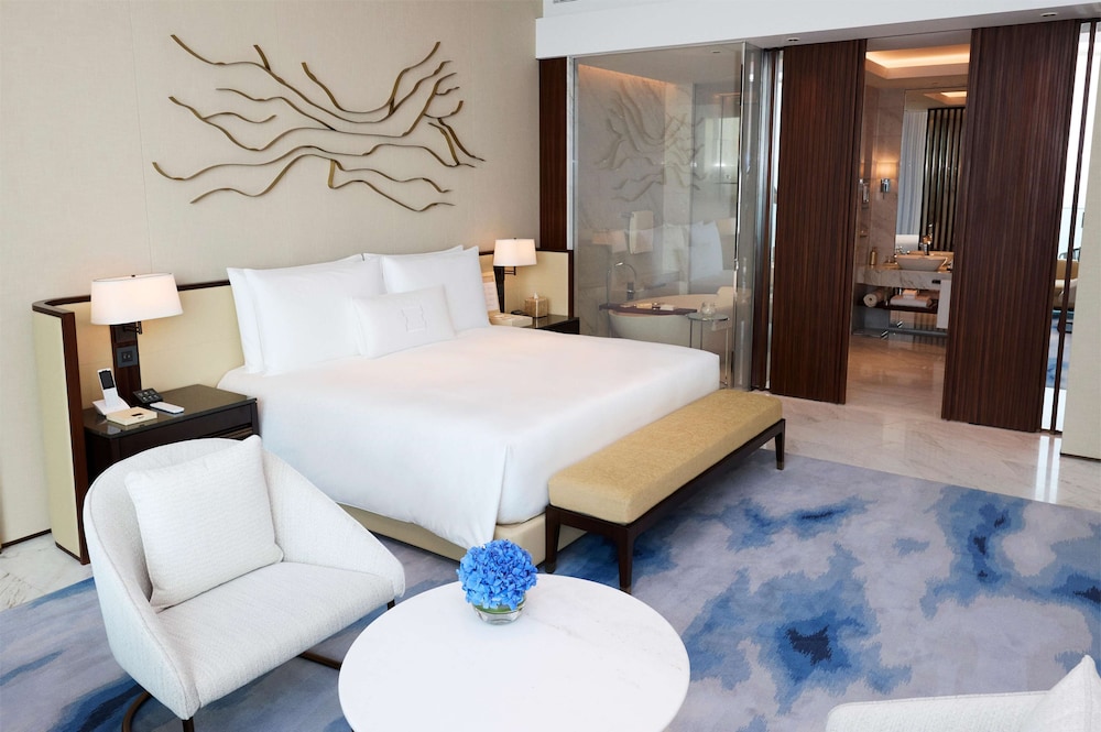 Every room at Atlantis The Royal speaks volumes of refinement and elegance. From smart TVs, minibars, and Nespresso machines to balconies offering breathtaking views of the gulf or skyline, each detail has been meticulously crafted for your comfort. For an elevated experience, upgraded rooms offer lounge access. But, it is the suites that truly steal the show with butler service, separate living rooms, and some even boast private outdoor pools.