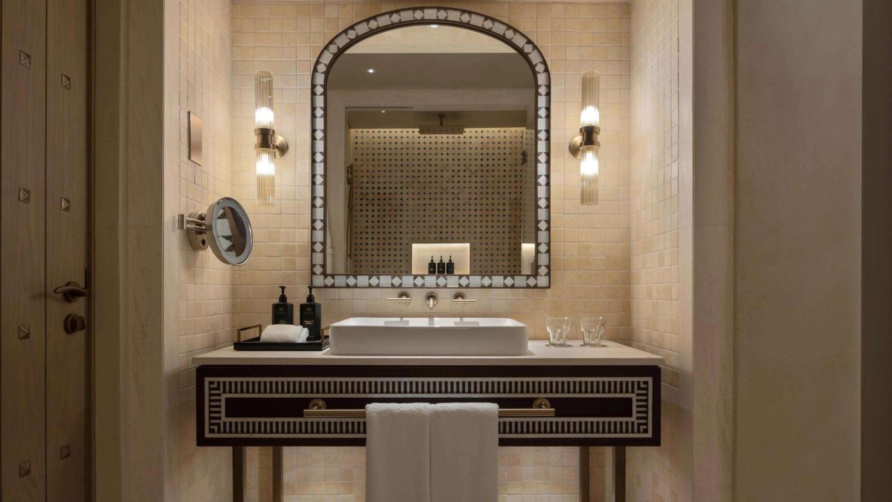 Every room in Bab Al Shams Desert Resort is a haven of comfort and style. Offering views of the serene desert or the resplendent courtyard, the rooms are adorned with charming lanterns, and equipped with complimentary Wi-Fi, satellite TV, minibars, and tea and coffee makers. For your peace of mind, safes are also provided. Craving a touch of extra luxury? Opt for upgraded rooms, which feature private terraces, or even the suites, which come with their own living areas. And for those midnight cravings, the resort provides 24/7 room service.