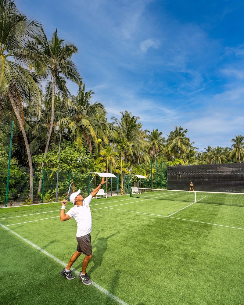 At Baglioni Resort Maldives, you’re surrounded by breathtaking natural beauty. The resort is nestled amidst a lush tropical landscape, bordered by the sparkling turquoise waters of the Indian Ocean. There’s also a strong commitment to sustainability. The resort was designed with methods and materials chosen to minimise environmental impact, making it a perfect destination for eco-conscious couples who appreciate nature and luxury in equal measure.