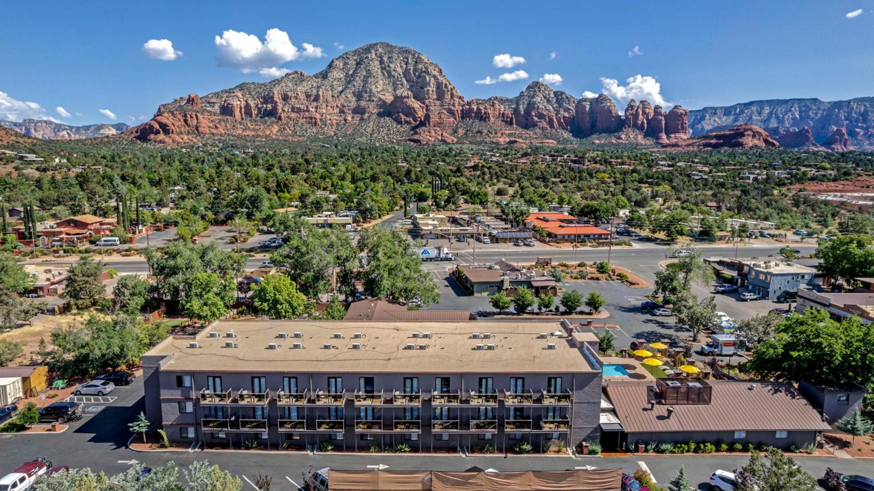Beyond the hotel’s modern comforts, you’ll find yourself surrounded by the breathtaking beauty of Sedona. The hotel’s central location allows you to explore the vibrant red rocks, enjoy serene walks by the creek, and experience the magic of Sedona’s landscapes.