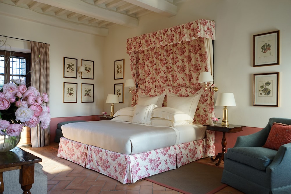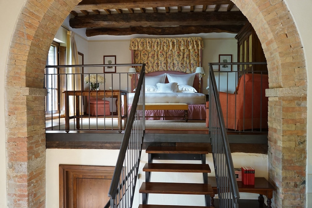 Whisk yourself away to a place where fairytales meet reality, in a former medieval castle now transformed into an elegant luxury hotel. Poised amidst lush vineyards and olive groves, this captivating retreat is a mere 19 km from both the historic Abbey of Sant’Antimo and the SS223 road. Revel in the rustic romance of this enchanting hotel, a haven for lovers and honeymooners seeking an unforgettable Tuscan experience.