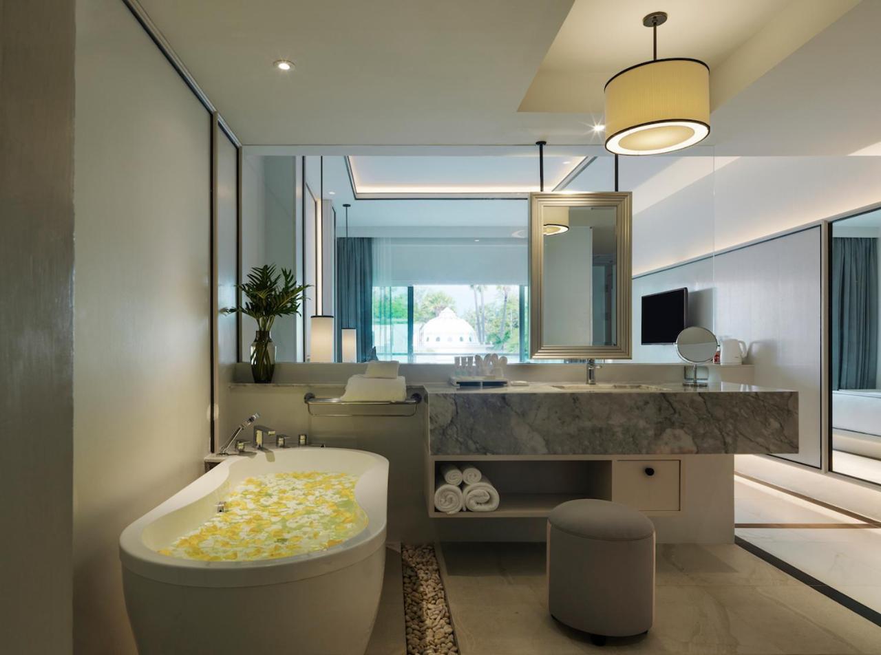 Chanalai Romantica Resort presents 13 luxurious deluxe pool access rooms, 24 deluxe pool view rooms, and 28 superior pool view rooms. Each room is meticulously designed to meet the discerning needs of guests, featuring amenities such as a separate shower and bathtub with hot and cold water, LCD TV, DVD player, satellite channels, tea and coffee-making facilities, bathrobe, fully stocked minibar, IDD phone, and a private safety box. The resort ensures accessibility, allowing wheelchair access to the rooms.