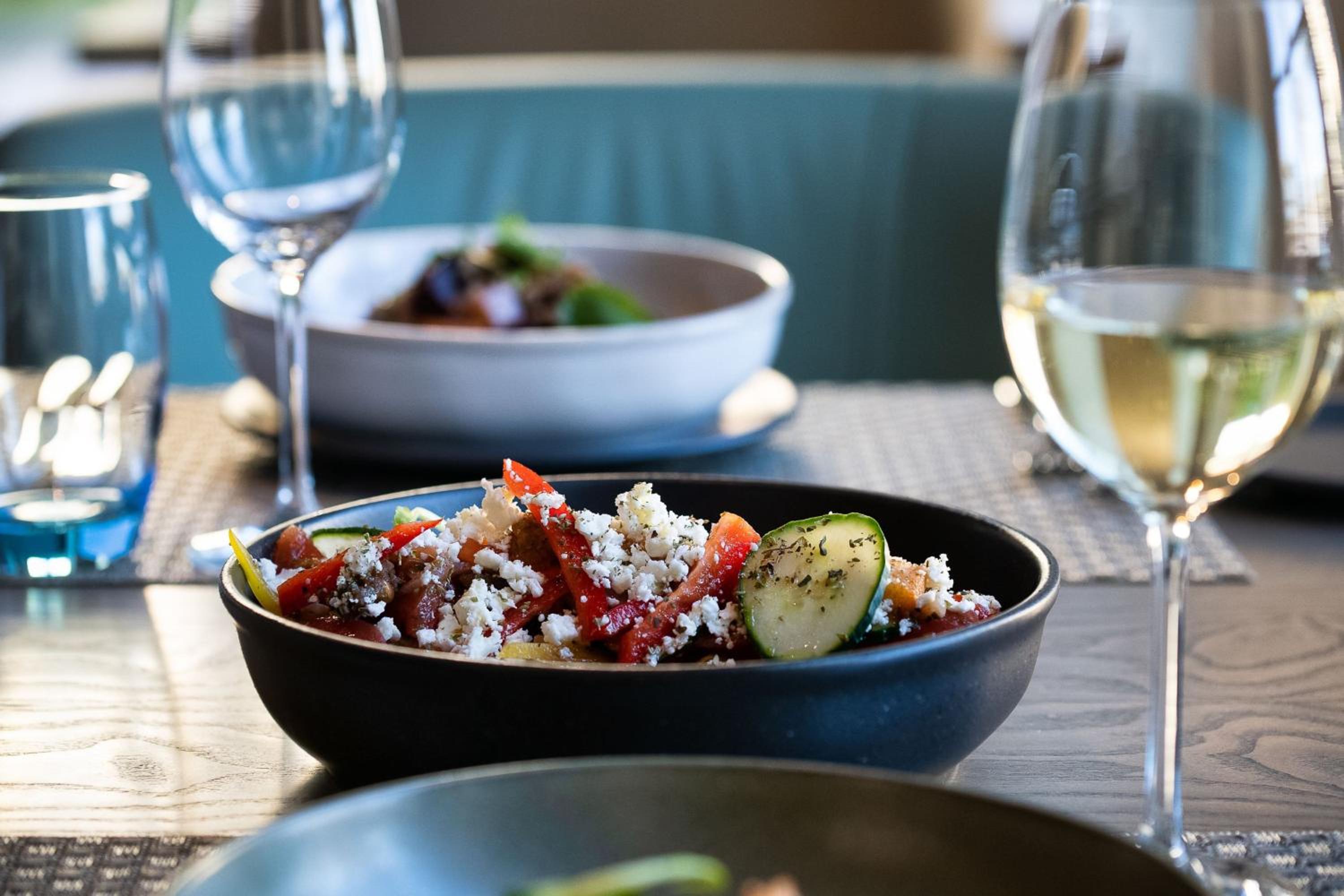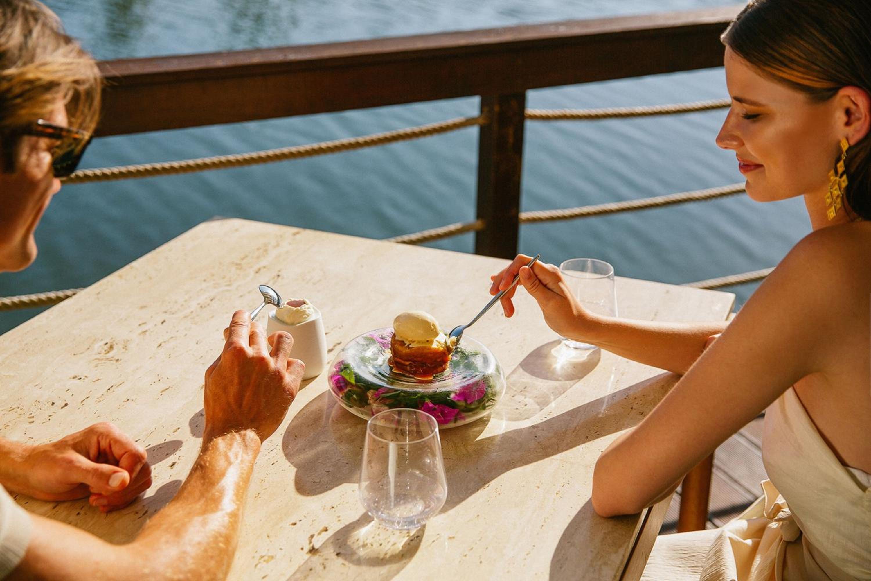 Indulge in signature wellness rituals that rejuvenate your mind, body, and soul. Afterward, savor a culinary journey that fuses Greek and Portuguese flavors to create a one-of-a-kind dining experience. From sunrise to sunset, the resort’s mixologists are on hand to craft the perfect cocktails to accompany your romantic moments.