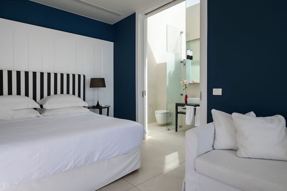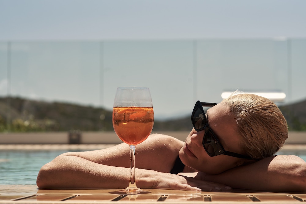 The amenities at the Boutique Villa-Hotel are designed to pamper and provide the ultimate relaxation experience for couples. All guests enjoy complimentary access to the Elixir Spa Gallery, which boasts a gym room, sauna, steam bath, massage room and an outdoor Jacuzzi. The Boutique Villa-Hotel also features a private beach club – a place where you can lounge and soak up the sun while sipping on refreshing cocktails.
