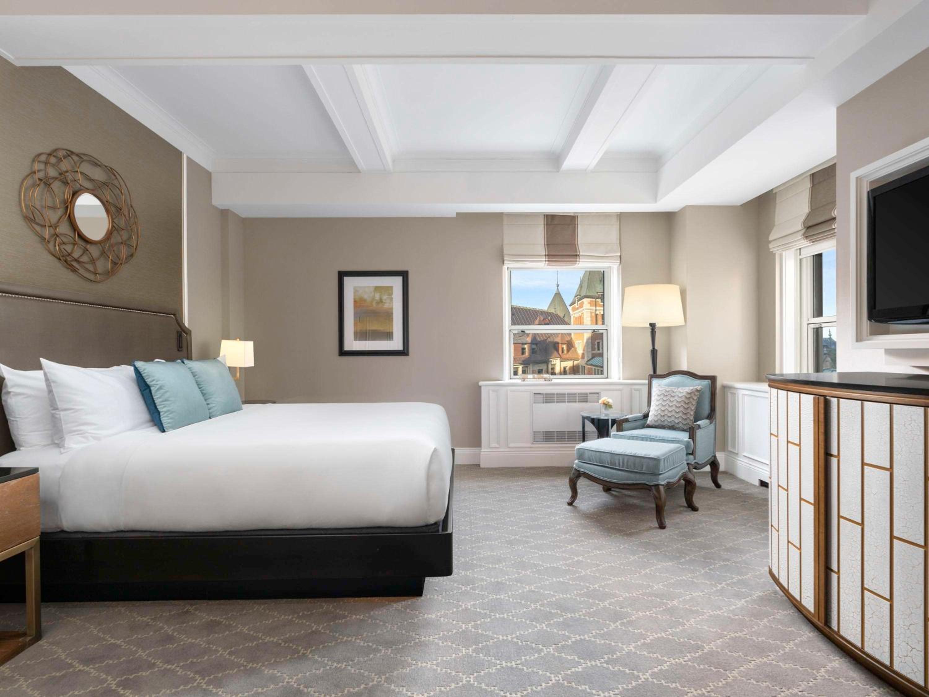 Luxurious Accommodations: The European-style rooms at Fairmont Le Chateau Frontenac are elegantly designed and equipped with modern amenities such as cable TV, coffee maker, ironing facilities, and air conditioning.