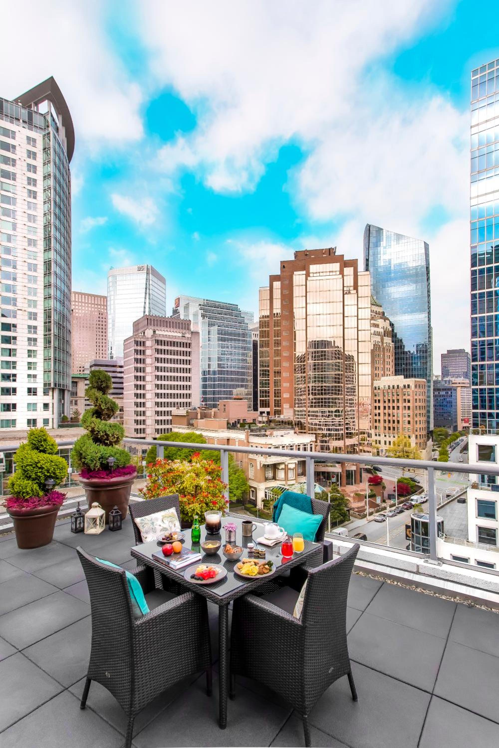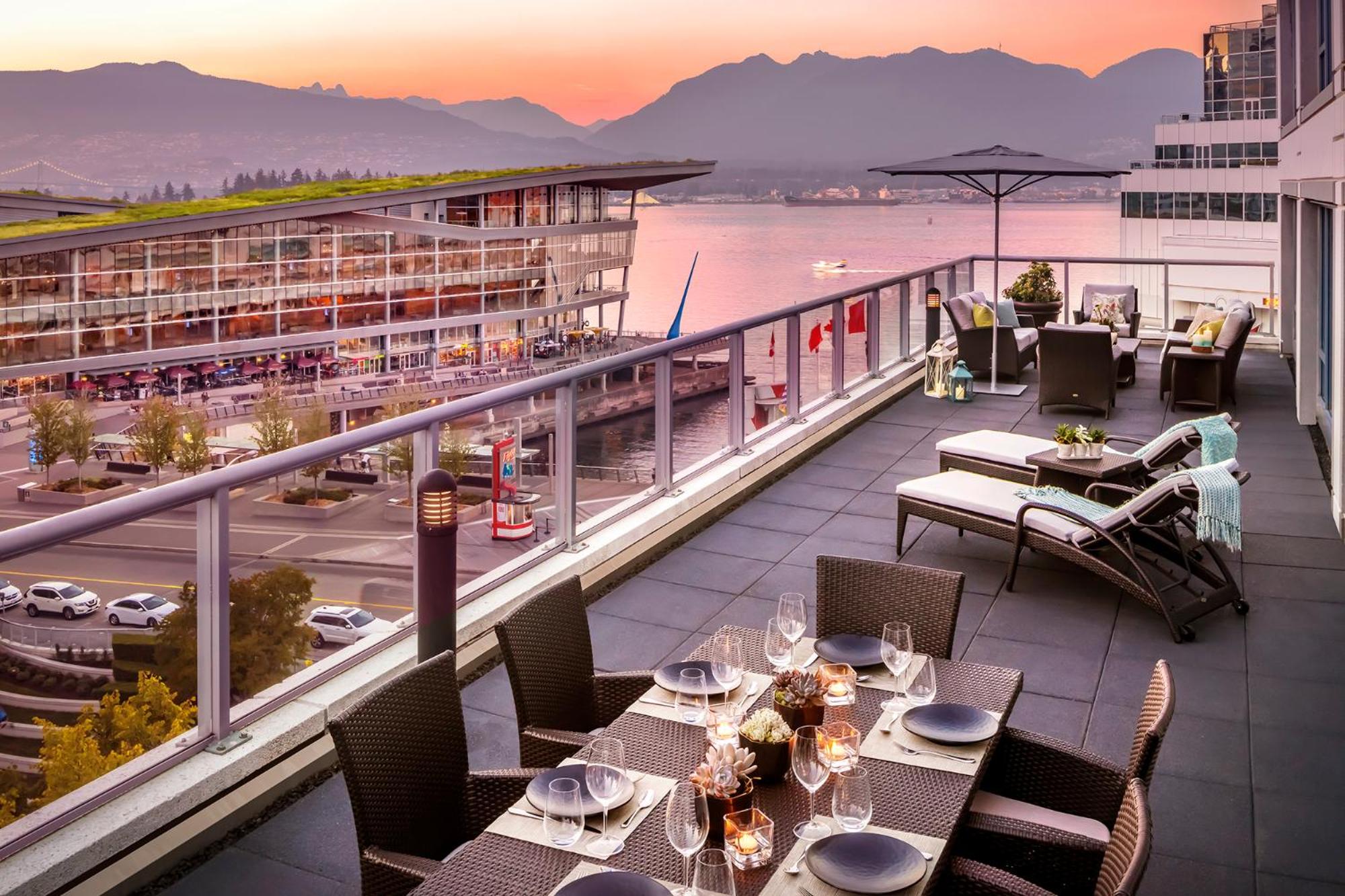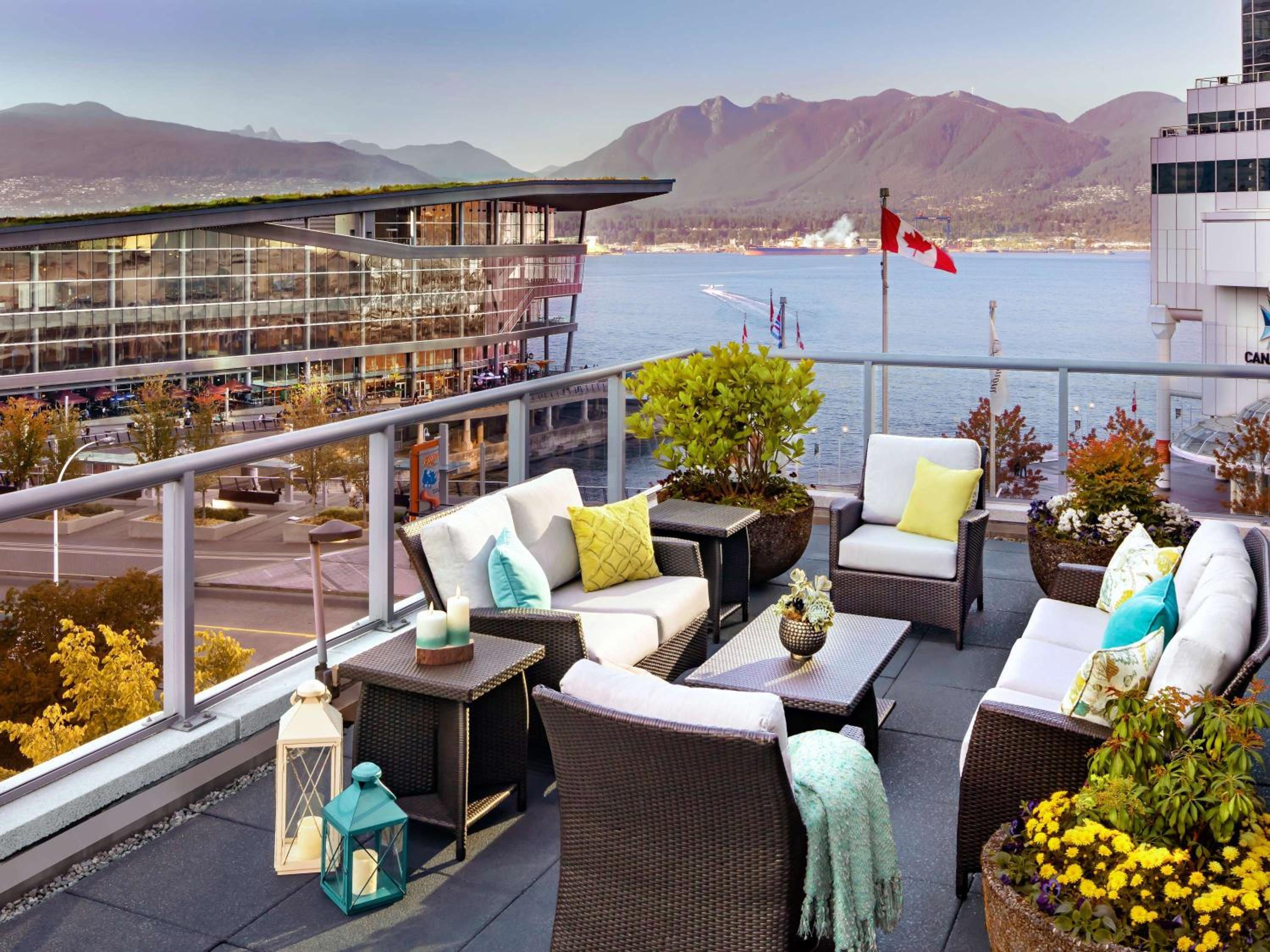 Unwind at the outdoor heated pool or rejuvenate at the modern gym and hot tub in the on-site health club. Take in the breathtaking scenery from the pool patio or explore nearby attractions like FlyOver Canada and Gastown.