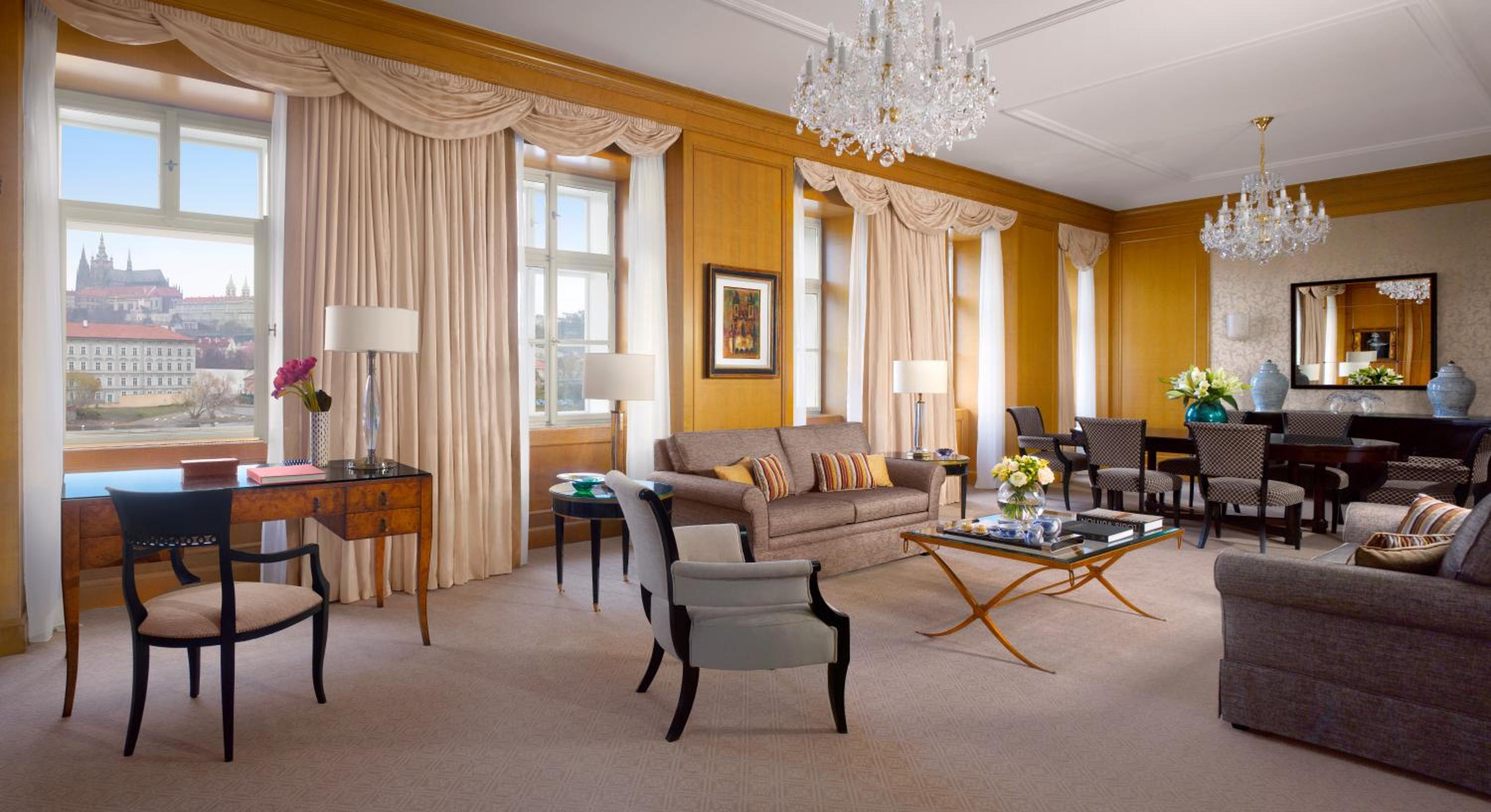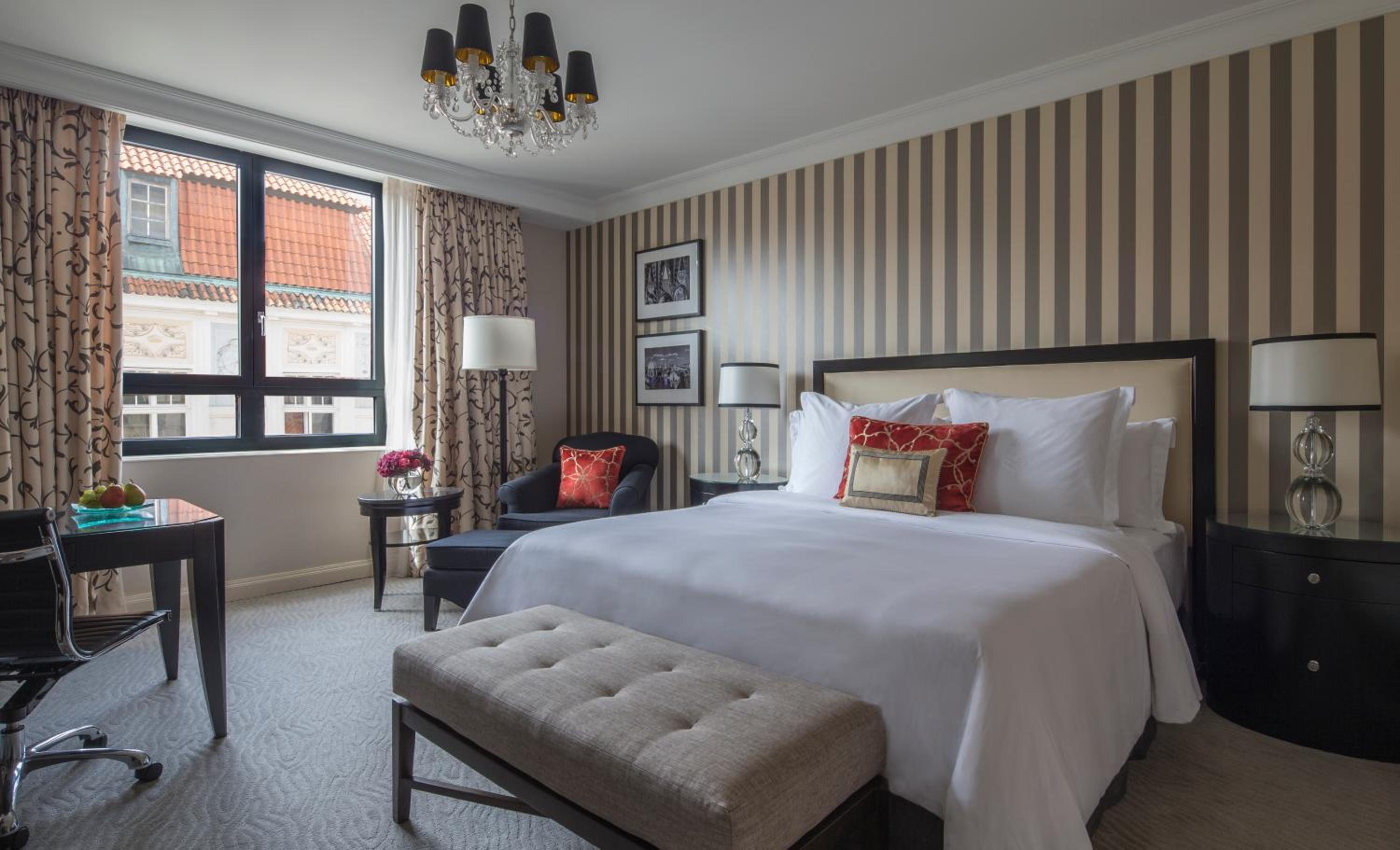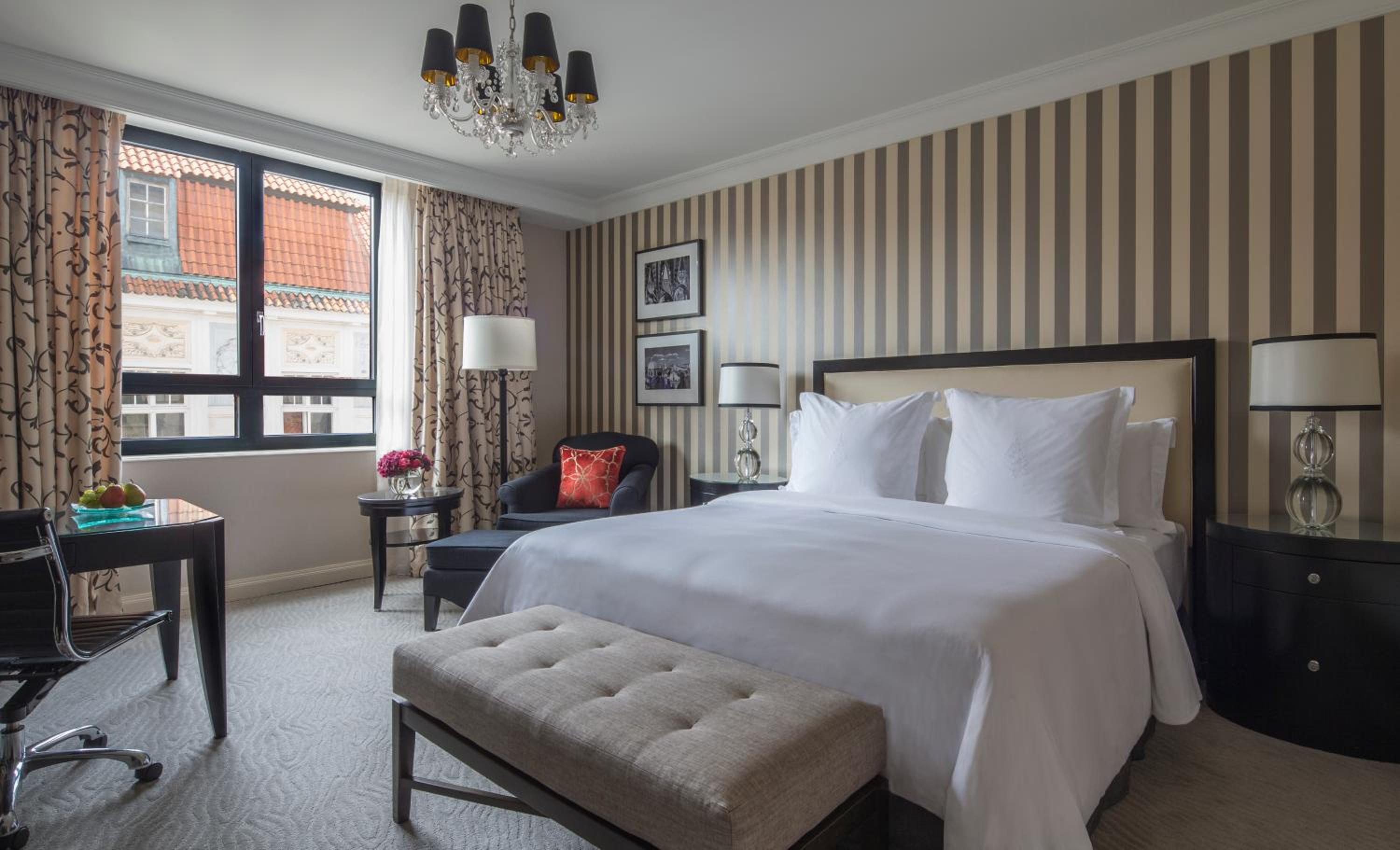 The rooms at the Four Seasons Hotel Prague are a perfect blend of sophistication and comfort. Each room is equipped with a minibar, flat-screen TV, free Wi-Fi, and marble bathrooms, offering a luxurious retreat for couples. Select rooms feature unique details such as chandeliers or vaulted ceilings, adding a touch of historical grandeur. And for those seeking extra space, opulent suites with separate living areas and additional bedrooms are available. Room service is also on hand, allowing guests to enjoy a private, romantic meal at any time.