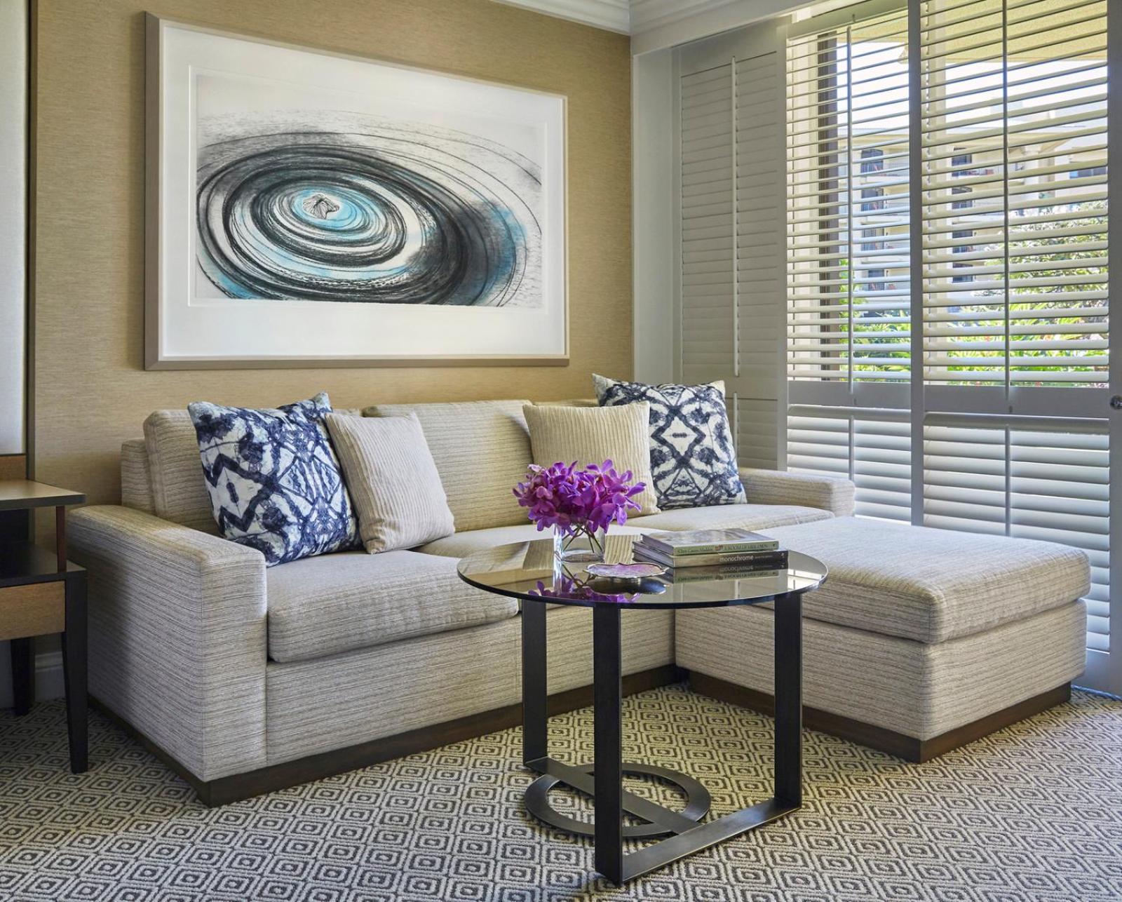 1 King Bed1400-sq-foot soundproofed room, furnished lanai with ocean views Club Level - Club Lounge access, continental breakfast, light refreshments, internet access in the lounge, and separate check-in locationLayout -...