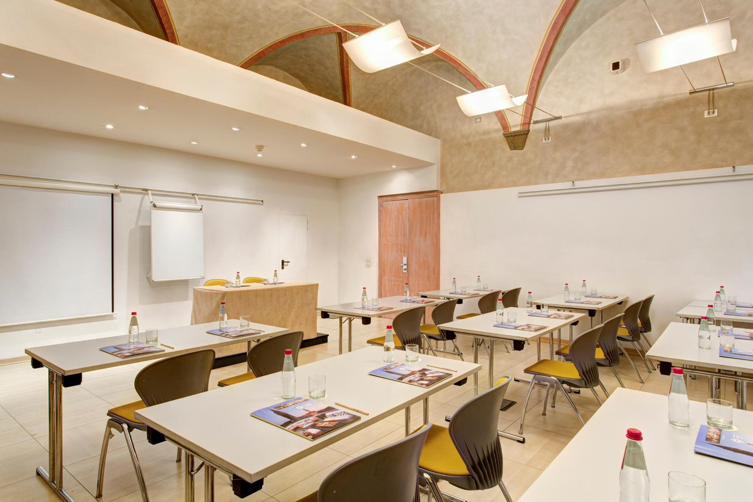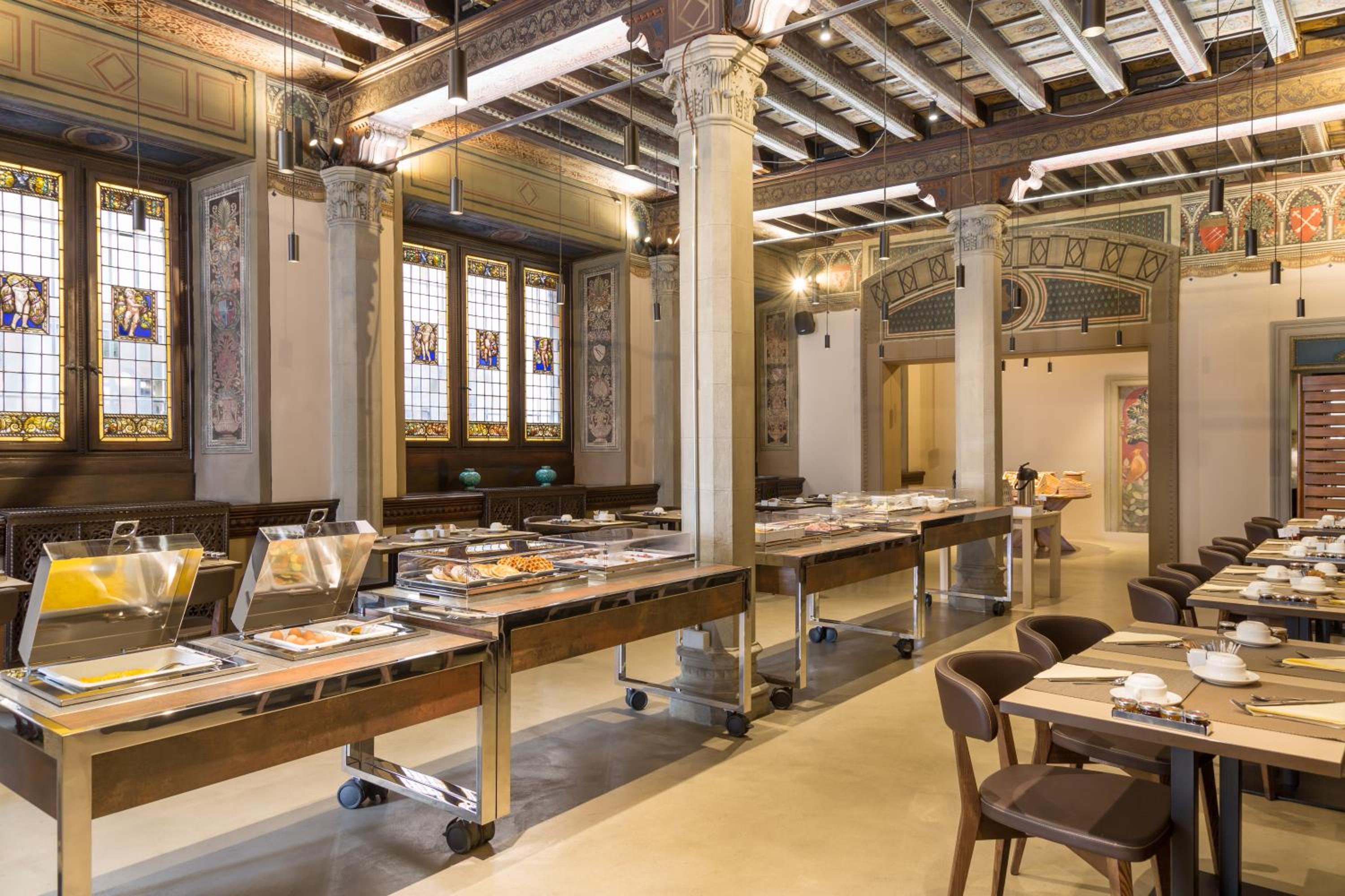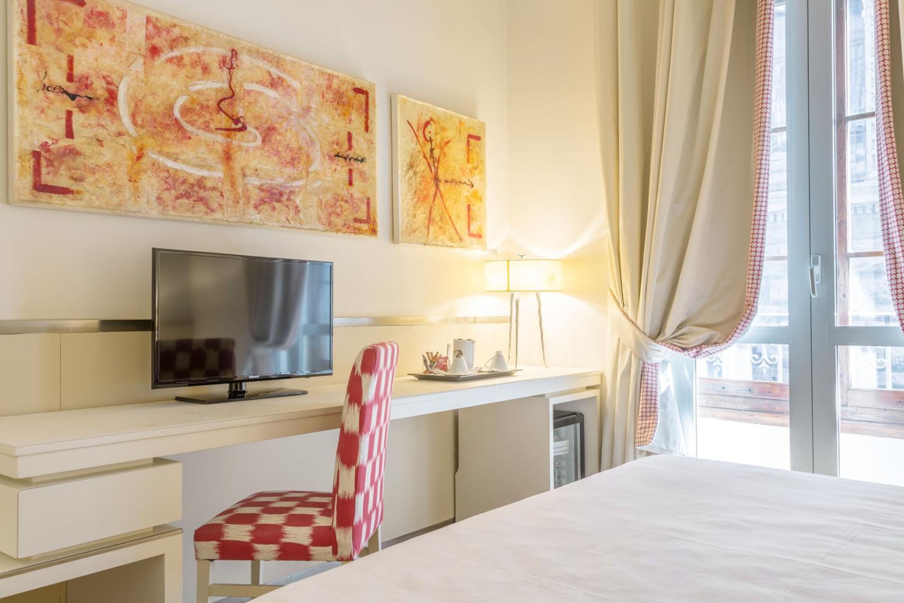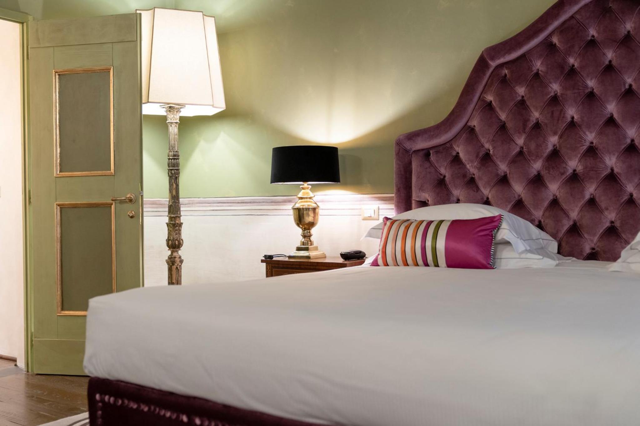 The hotel boasts a refined restaurant and an intimate wine bar for your dining pleasure. But the real gem is the rooftop bar, offering a breathtaking panorama of the city’s cathedral. The onsite restaurant and American bar are adorned with frescoes by Galileo Chini, offering you a taste of history with your meal or cocktail.