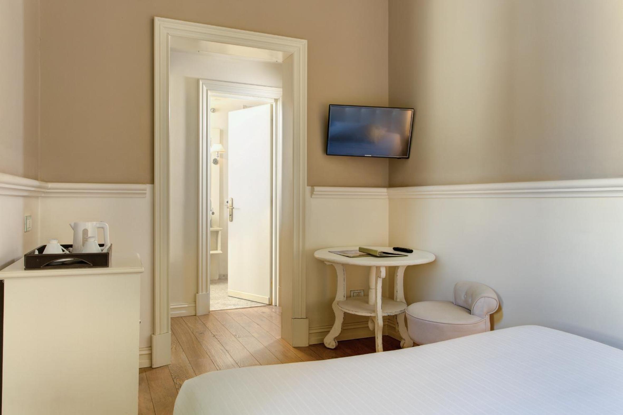 You’ll be spoiled for choice with the Grand Hotel Cavour’s selection of well-appointed rooms and suites. Each room comes equipped with complimentary Wi-Fi, flat-screen TVs, and a minibar. The recently renovated interior design features hardwood floors and tea kettles, making for a cozy yet luxurious atmosphere. Upgraded rooms offer stunning city views for a truly immersive Florentine experience.