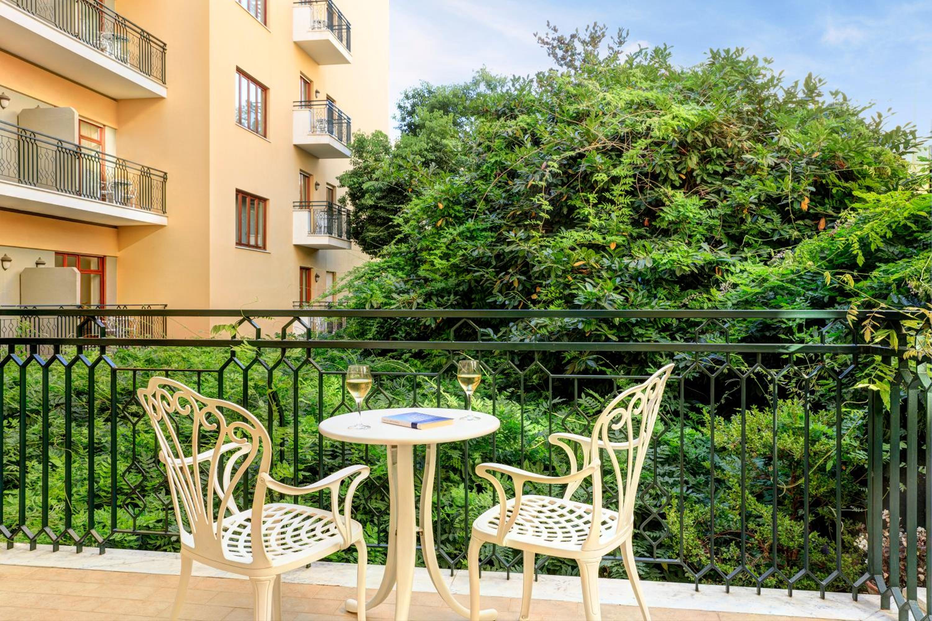 Each room in the Grand Hotel De La Ville is a high-end retreat. Decked with retro-style furnishings and equipped with Wi-Fi and flat-screen TVs, you’ll have all the modern conveniences at your fingertips. Relish in the tranquility of your private balcony or terrace, where you can enjoy sweeping views of the gulf or lush hotel gardens. If you prefer a quiet night in, take advantage of the room service available.