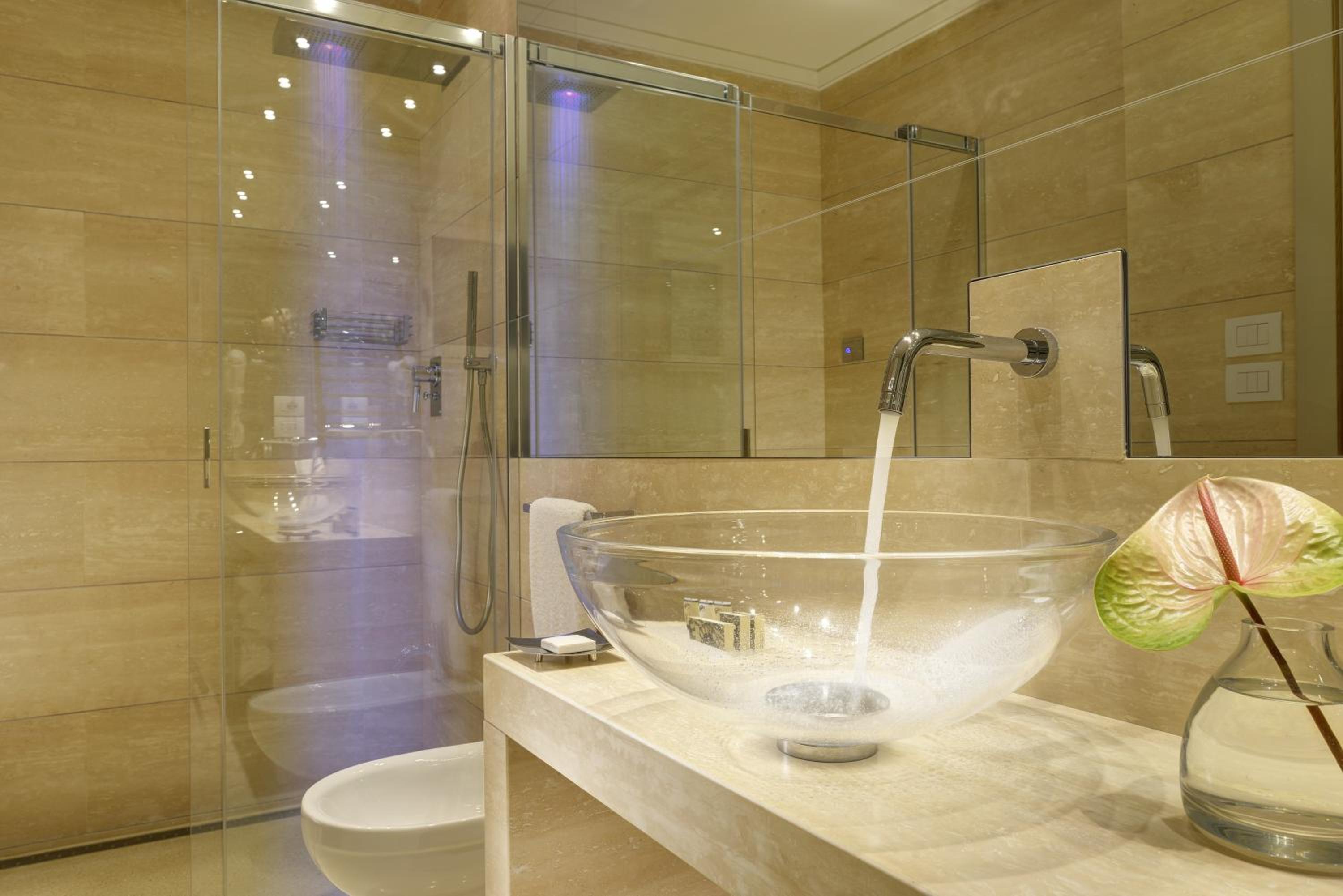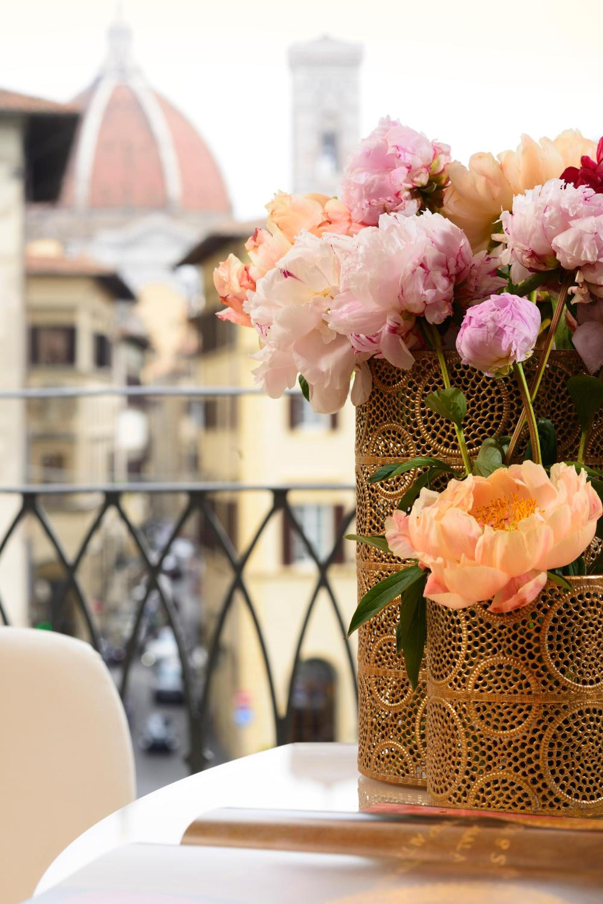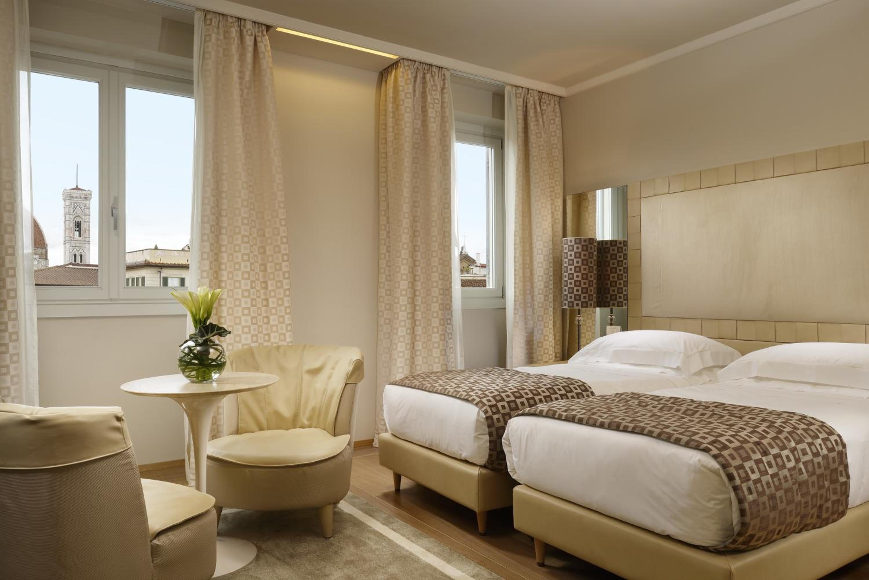 Each of the hotel’s modern rooms is a testament to elegant decor, equipped with minibars, Wi-Fi, and flat-screen TVs. Not to mention the thoughtful addition of tea and coffee making facilities for those cozy mornings in bed. Opt for an upgraded room, and be rewarded with mesmerizing views of Florence’s landmarks. The suites are a notch above, featuring sitting areas, marble bathrooms, balconies, and romantic 4-poster beds. And for your convenience, room service is always just a call away.
