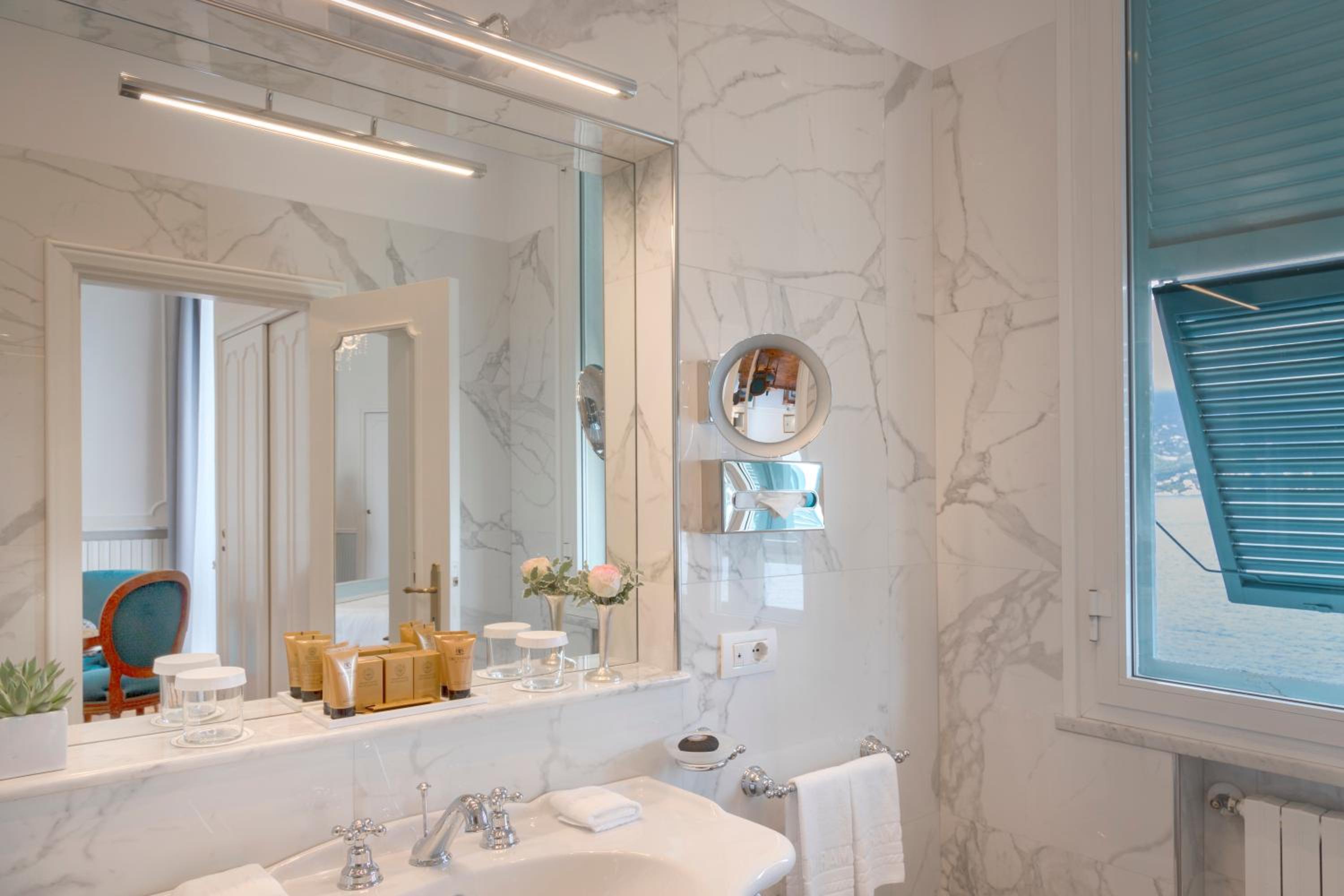When love is in the air and the setting sun paints the sky with hues of the evening, the warmth of an Art Nouveau building, dating back to the majestic era of 1903, welcomes you. Looking across the road, the endless azure canvas of the Ligurian Sea enchants your senses. This dreamlike scene is not a figment of imagination but the upscale hotel that stands just 1.9 km away from the historic wonder, La Cervara, a former abbey.