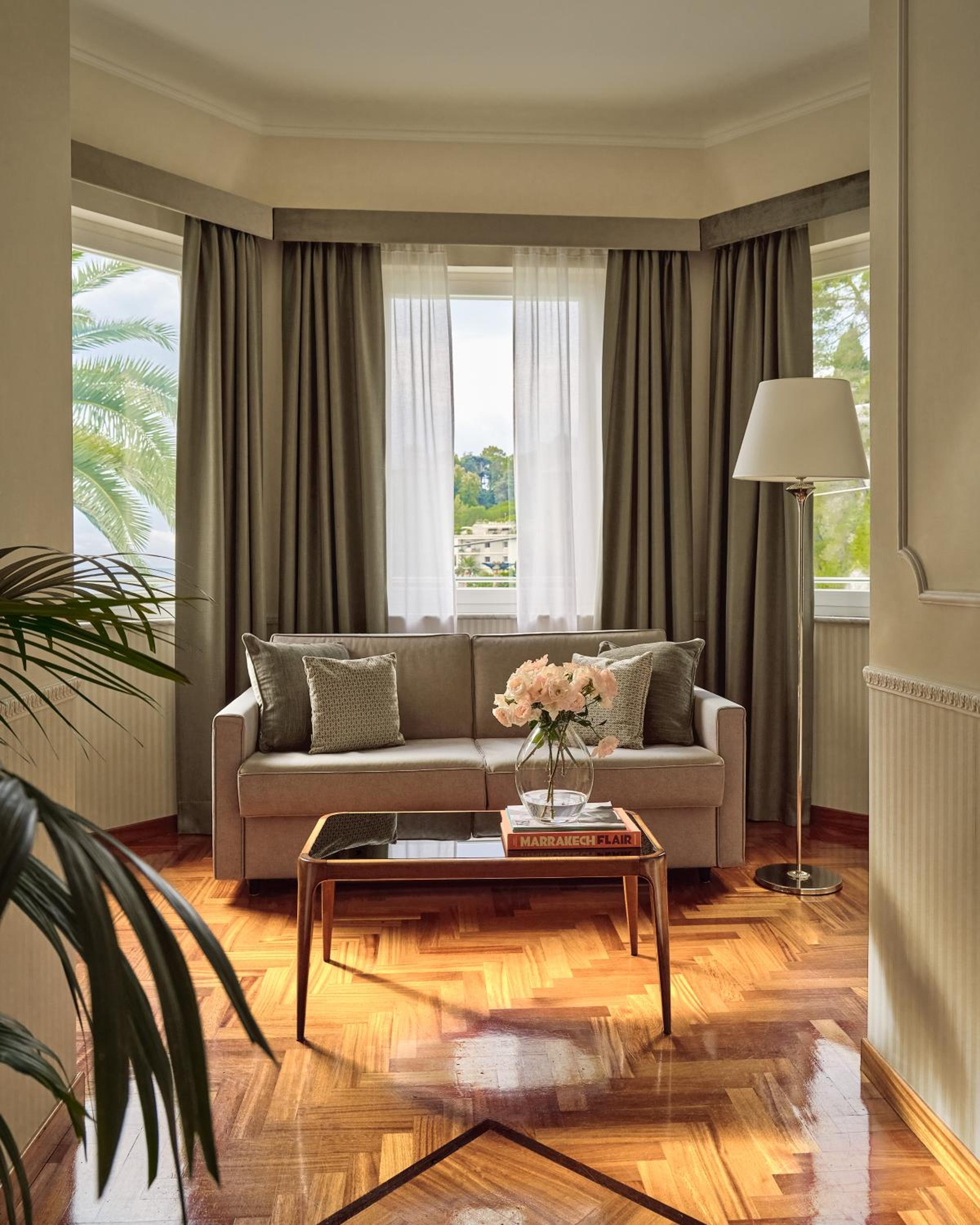 Every room in this upscale hotel exudes elegance, with polished wooden floors and delicate chandeliers that light up your romantic evenings. Modern amenities like Wi-Fi and satellite TV keep you connected with the world, while the breathtaking sea or garden views from the rooms keep you rooted in the raw beauty of nature. For those seeking grandeur, some rooms also offer balconies that open to the mesmerizing horizon.