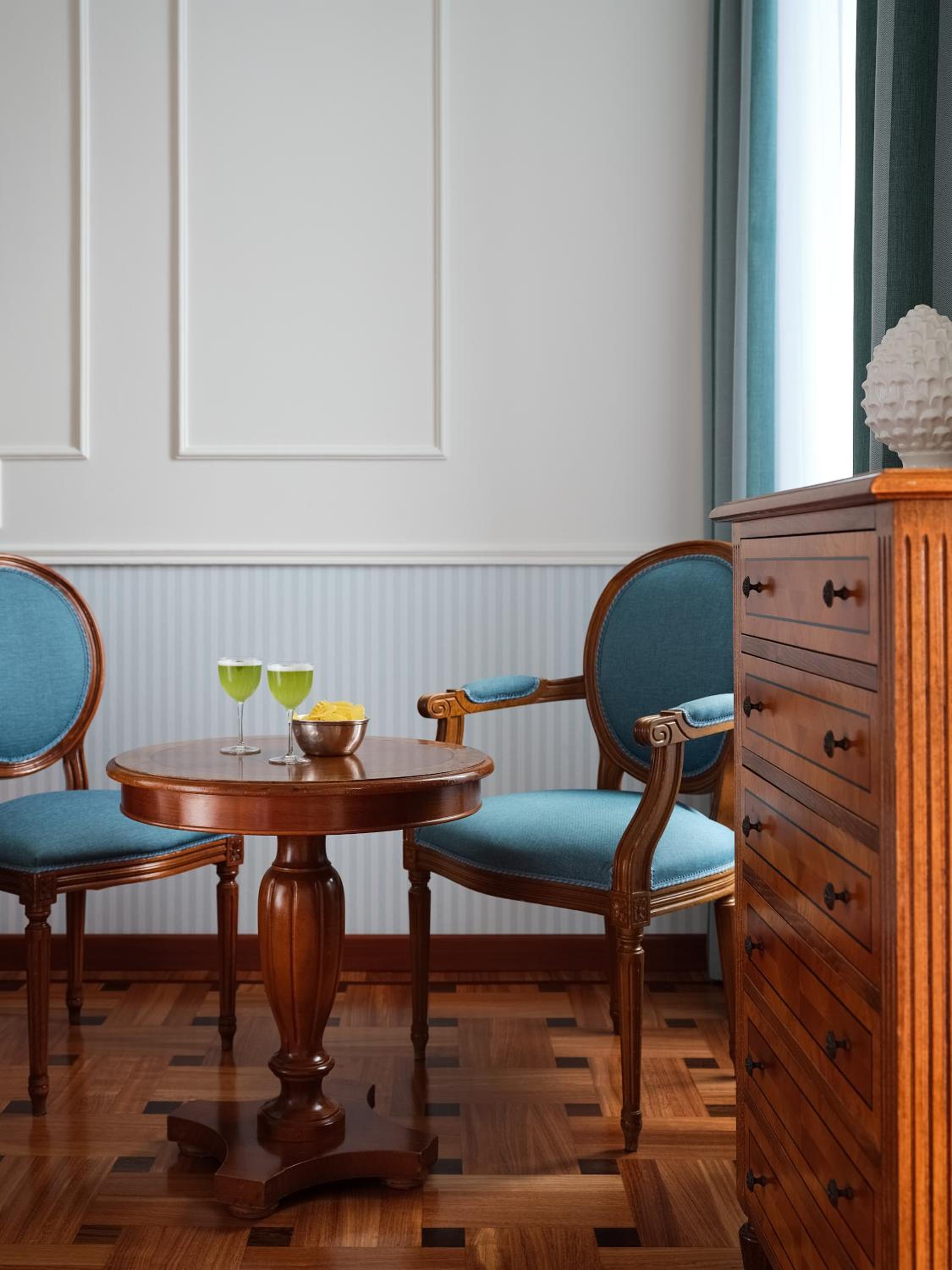 The hotel takes pride in its elegant restaurant that boasts of beautiful frescoes and a terrace. Here, every meal turns into a grand affair. Not one, not two, but three bars are at your service. Whether you wish to unwind by the poolside or enjoy a melodious evening with a piano playing in the background, the bars promise a rich variety of spirits and cocktails.