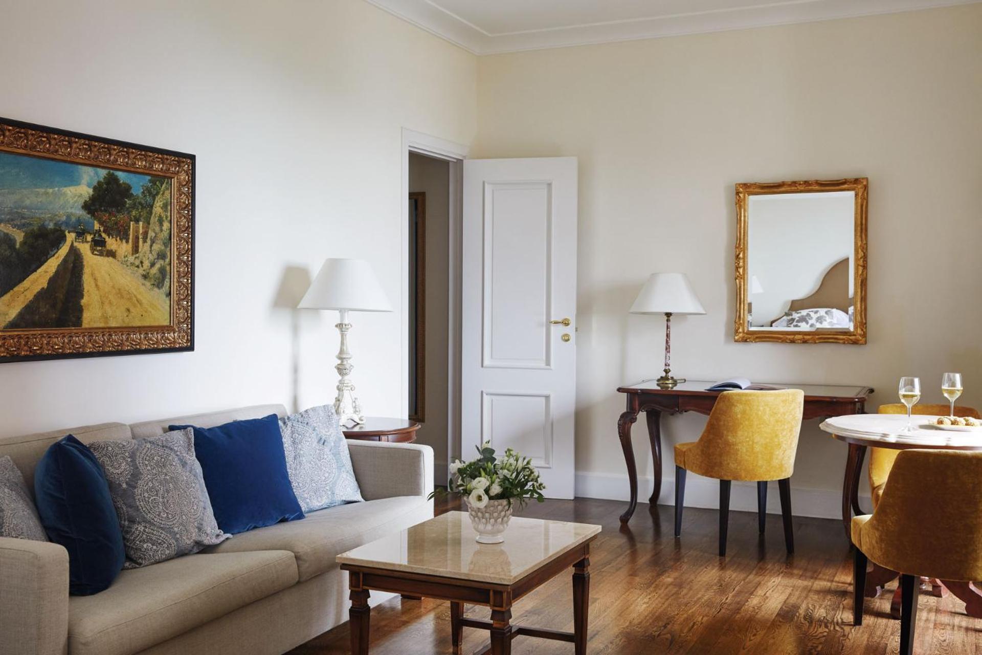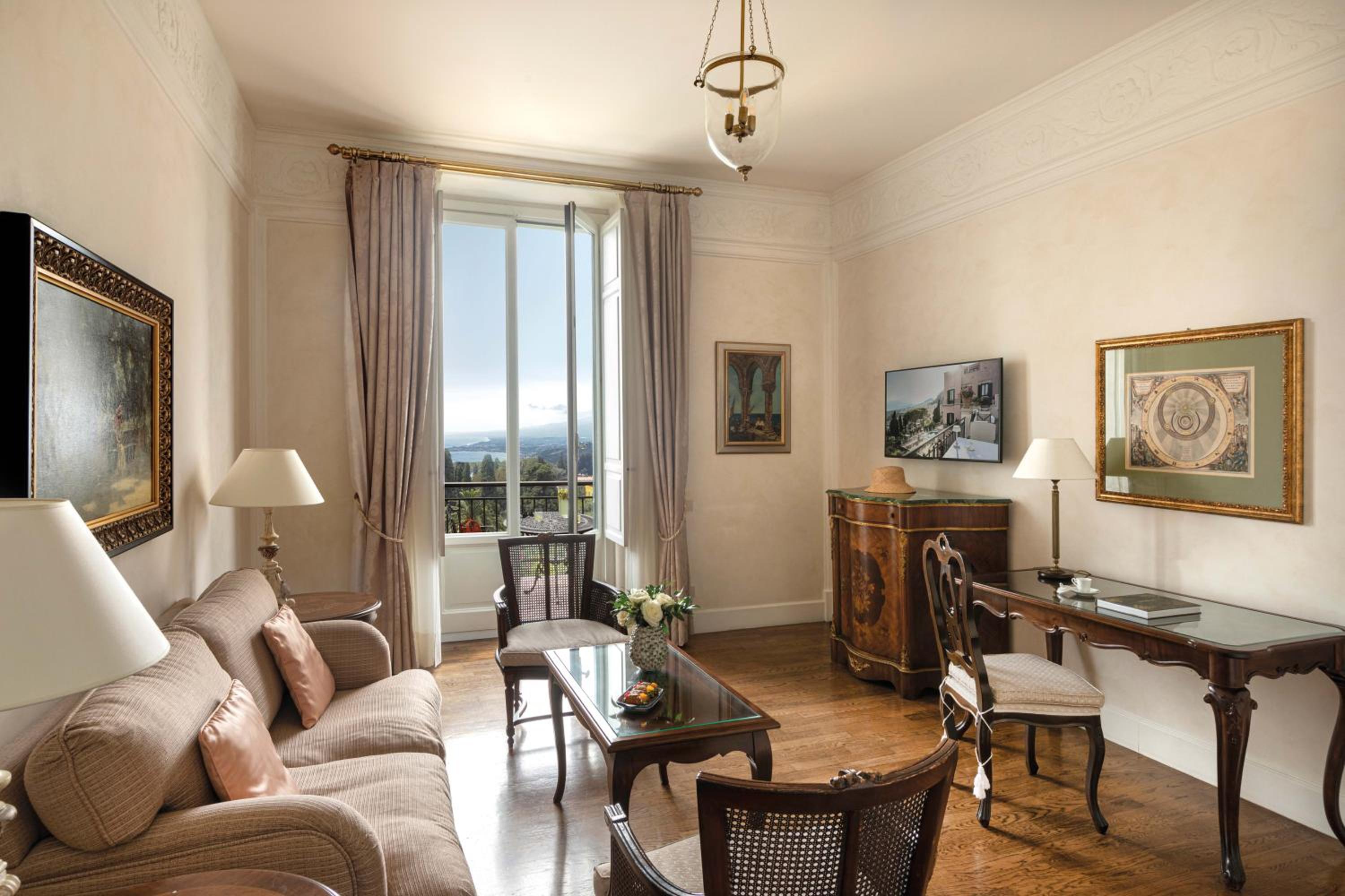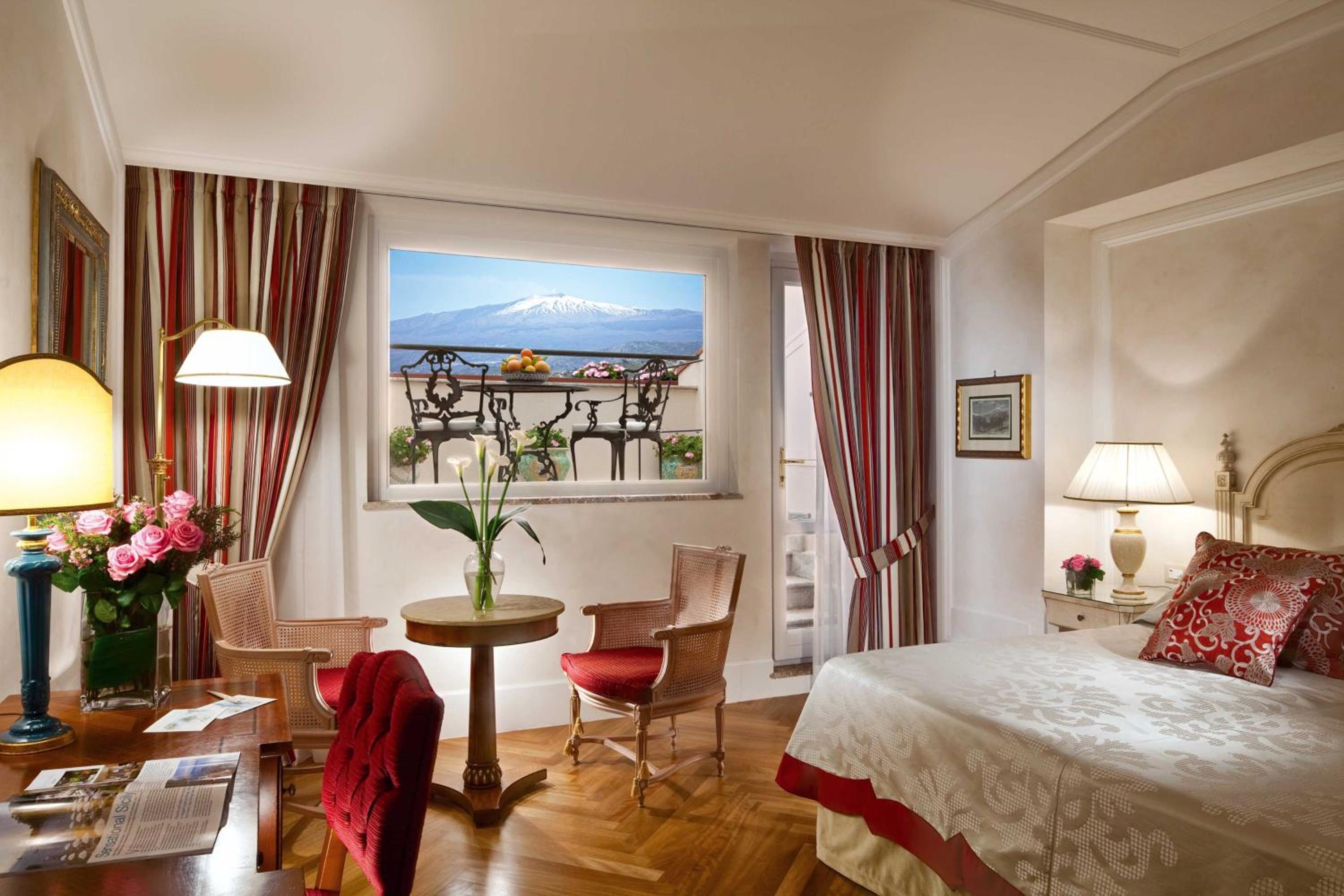 Experience breathtaking views of Mount Etna and the Sicilian Coast at Grand Hotel Timeo. Relax in the outdoor pool, indulge in spa treatments, and enjoy the comfort of air-conditioned rooms with modern amenities.
