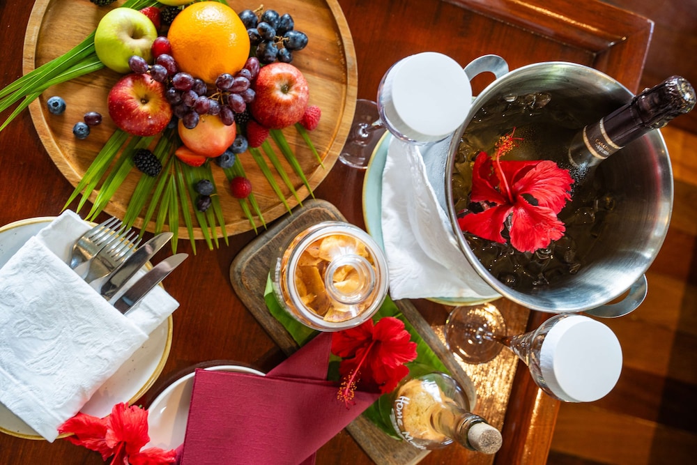 Savor culinary delights at our on-site restaurants, including Mahe Restaurant, while enjoying the convenience of 24-hour room service. Our all-inclusive rates ensure that meals and beverages are a part of your getaway experience.