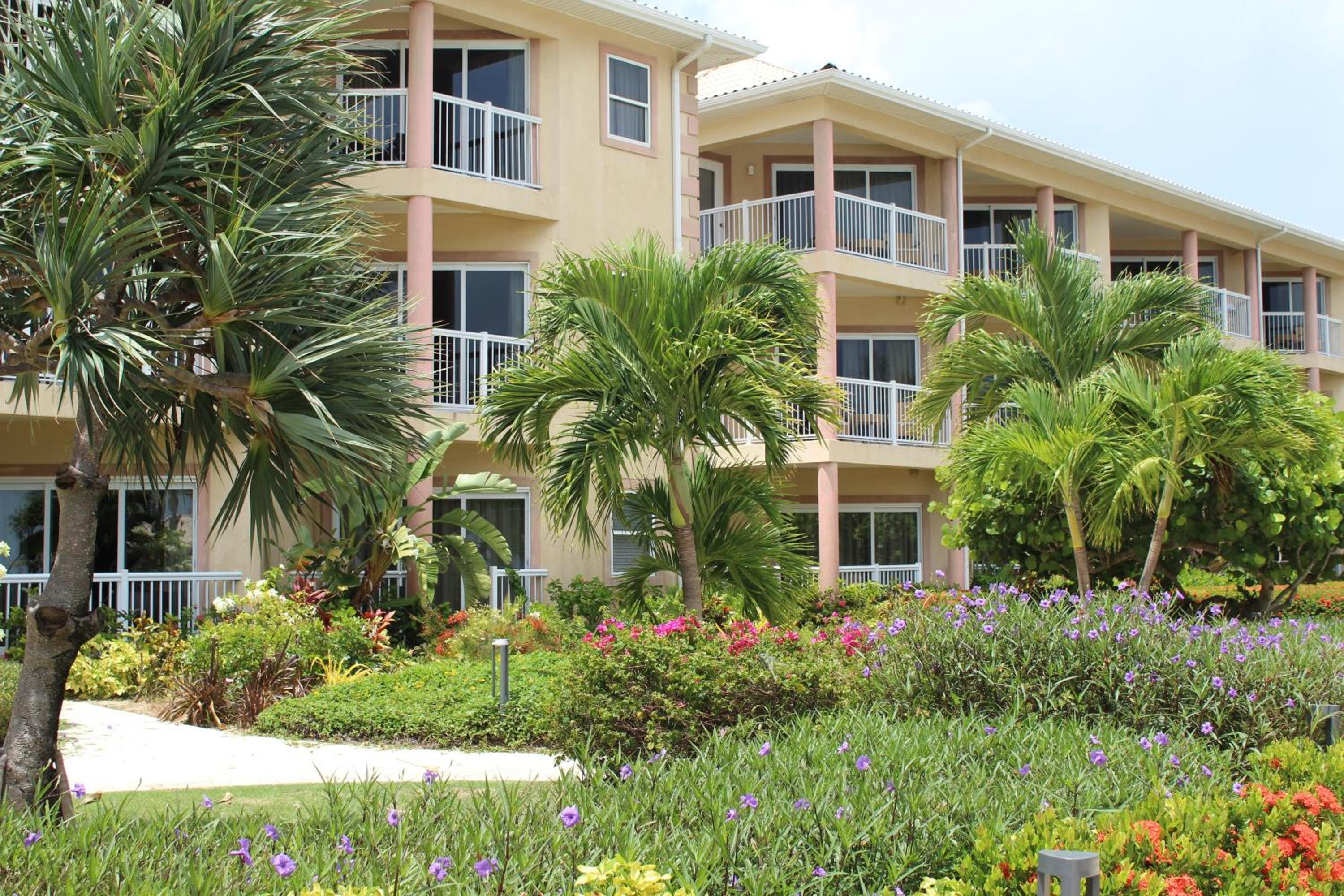 The oceanfront Holiday Inn Resort Grand Cayman offers a lush tropical garden, a refreshing swimming pool, and proximity to the island's only 18-hole golf course.