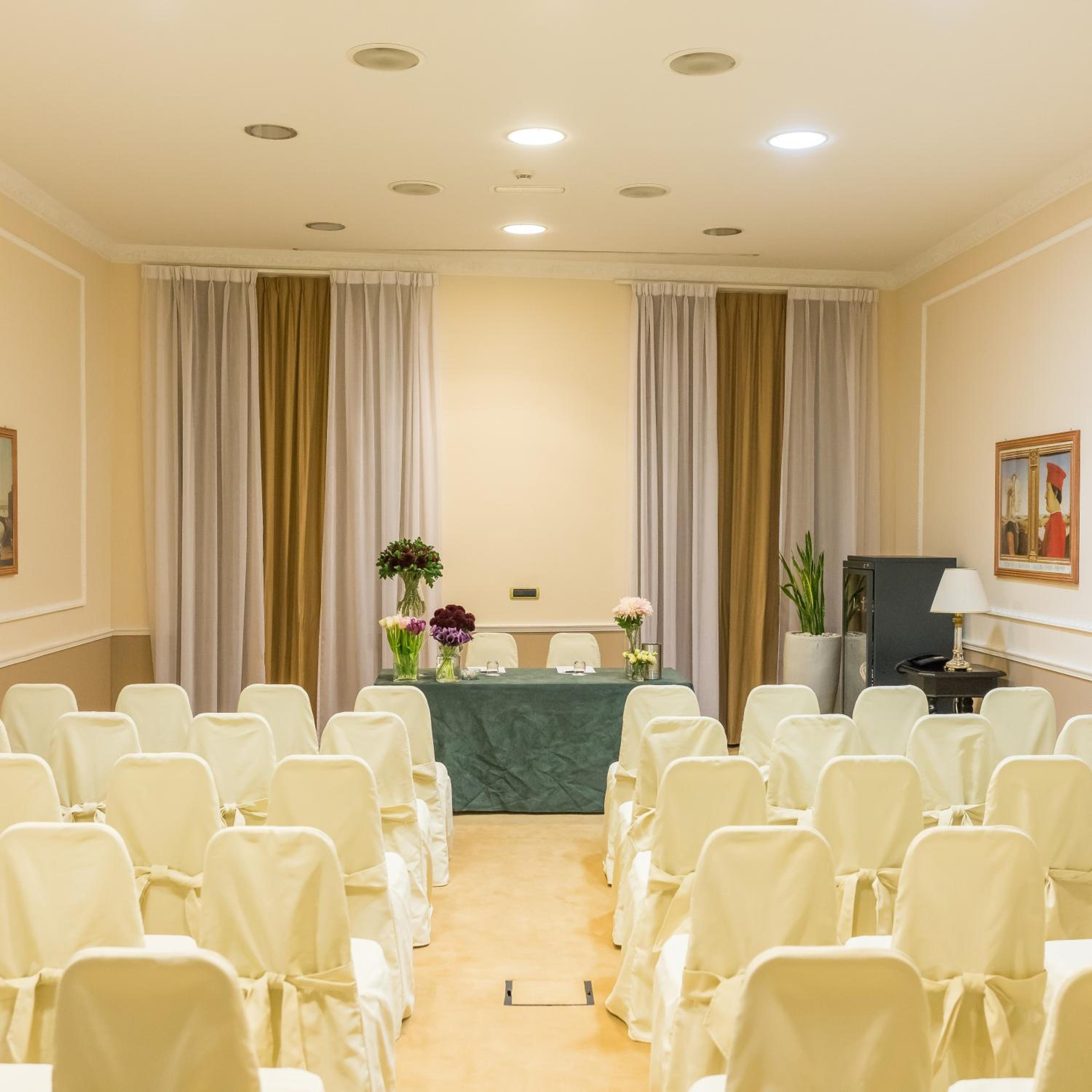 Start your mornings with a complimentary breakfast buffet served in the elegant Sala Parlamento, under a beautifully frescoed ceiling that once witnessed the meetings of Italy’s Parliament and Senators. The hotel’s restaurant, La Chiostrina, nestled in a 16th-century courtyard, offers an innovative menu for the gastronomy enthusiast. Whether you’re seeking a cafe latte or a cocktail, the hotel’s cafe/bar and upscale lounge cater to your every mood and moment.