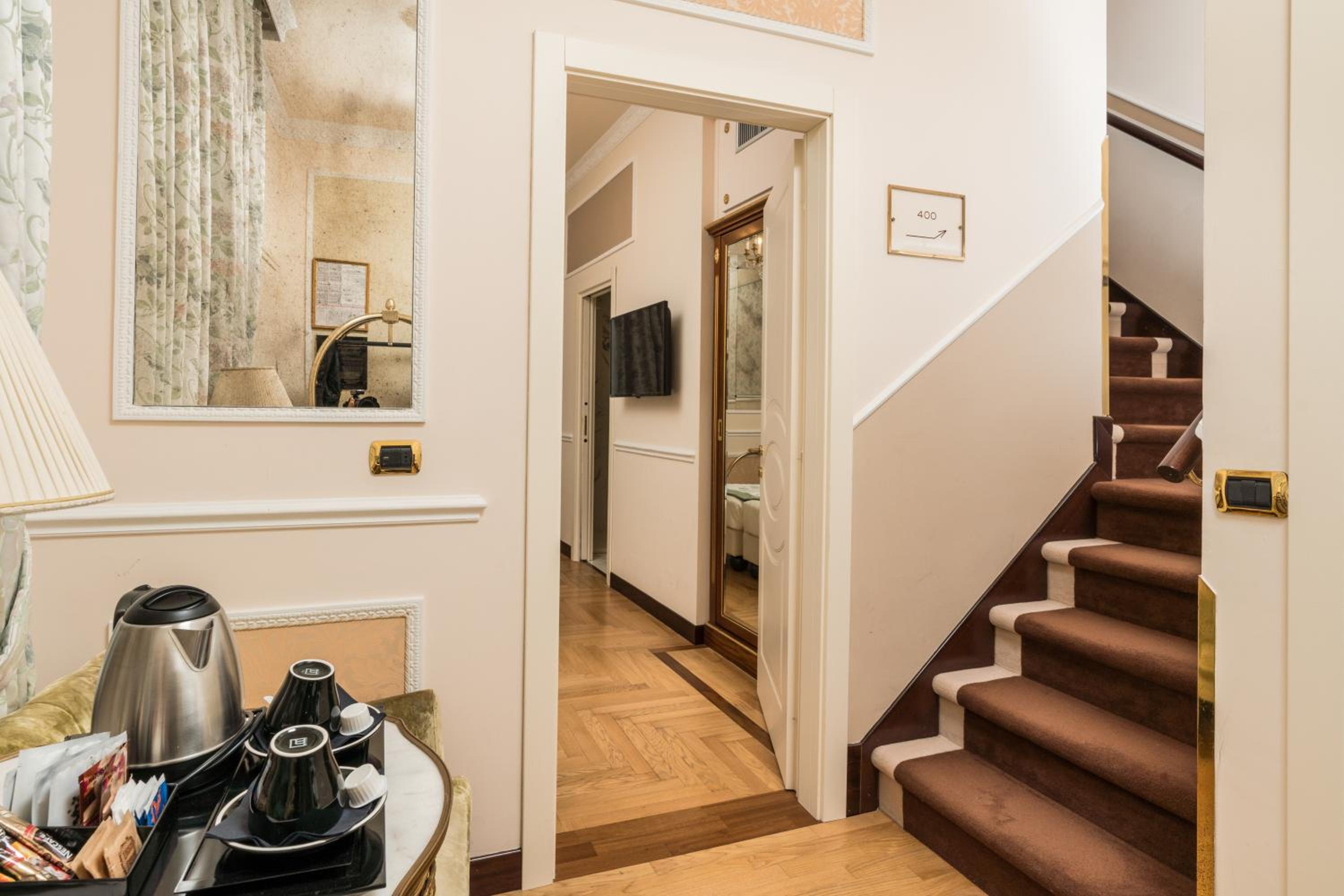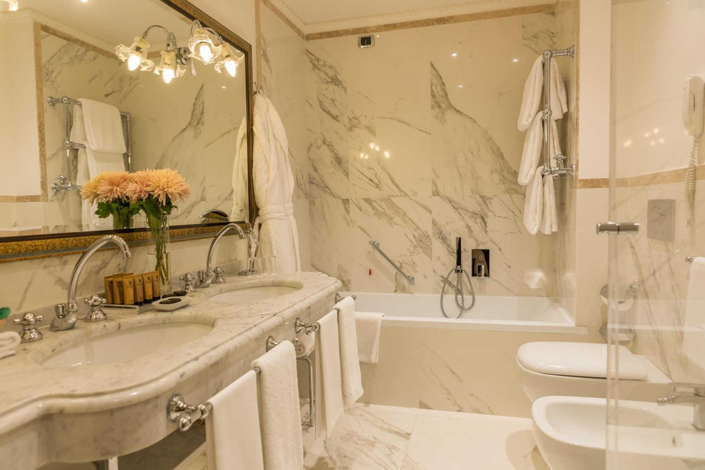 Each of the 74 rooms at Hotel Bernini carries the aura of the past, with antique furnishings, scenic views, and modern conveniences like minibars, free Wi-Fi, and flat-screen TVs. The upgraded options add a touch of sophistication with Murano glass lamps, wood-beamed ceilings, and four-poster beds. For a truly indulgent stay, opt for the suites, complete with sitting areas, and some even feature sofas and whirlpool tubs. With the availability of room service, each moment of your stay is crafted for comfort and luxury.
