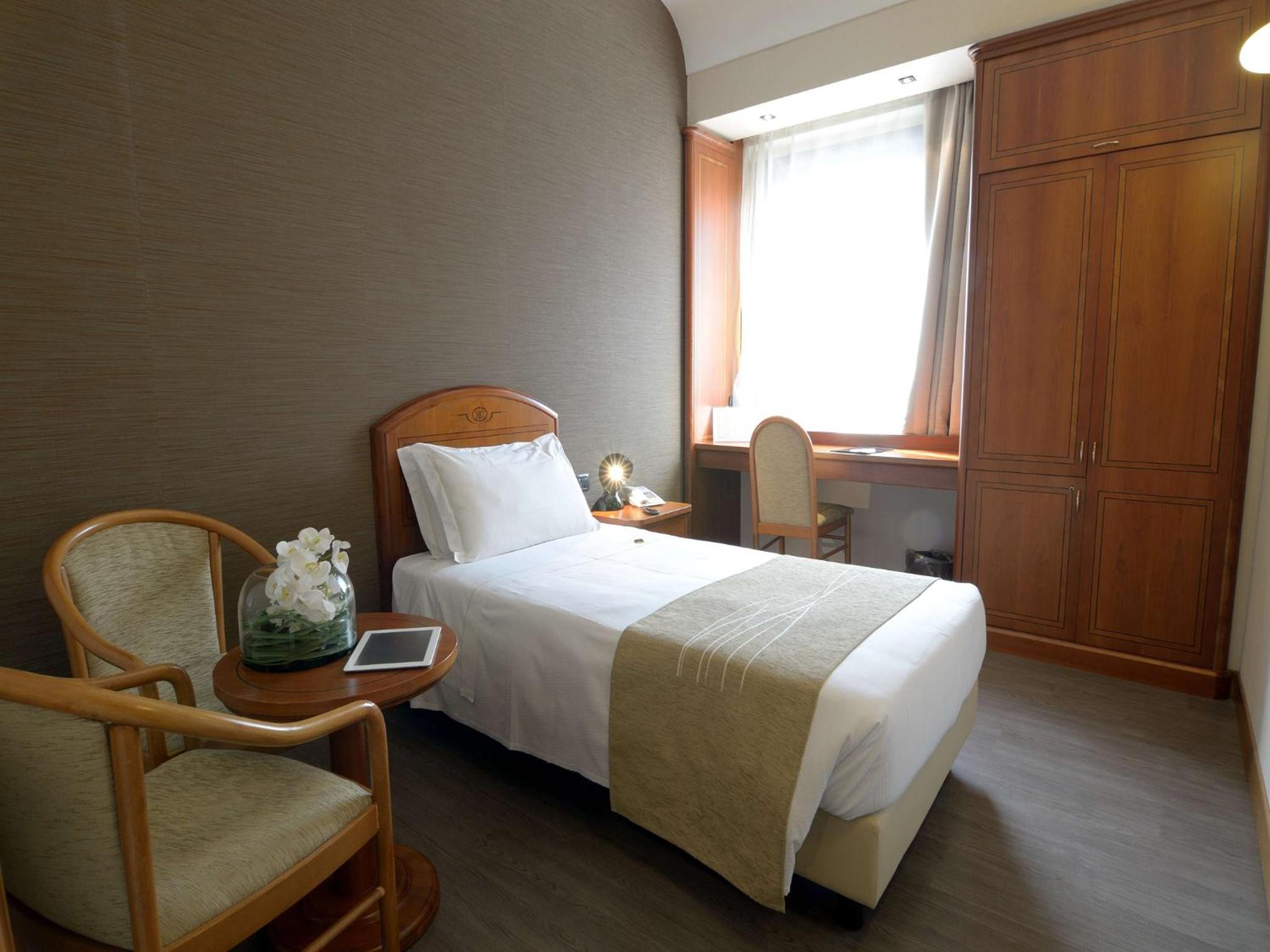 Indulge in our complimentary WI-Fi, energize at the panoramic top-floor gym, and start your day right with a delicious and varied breakfast buffet. Plus, being a short walk from the Palalottomatica venue, enjoy easy access to sports and concerts during your stay at Dei Congressi Hotel.