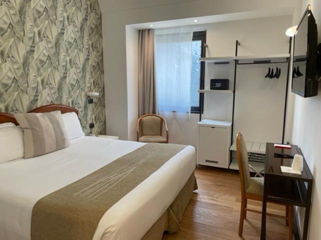 Experience comfort in our renovated rooms featuring parquet floors, elegant wooden furniture, and a dedicated work desk. Stay entertained with satellite TV, and stay refreshed with complimentary water from the in-room mini fridge.
