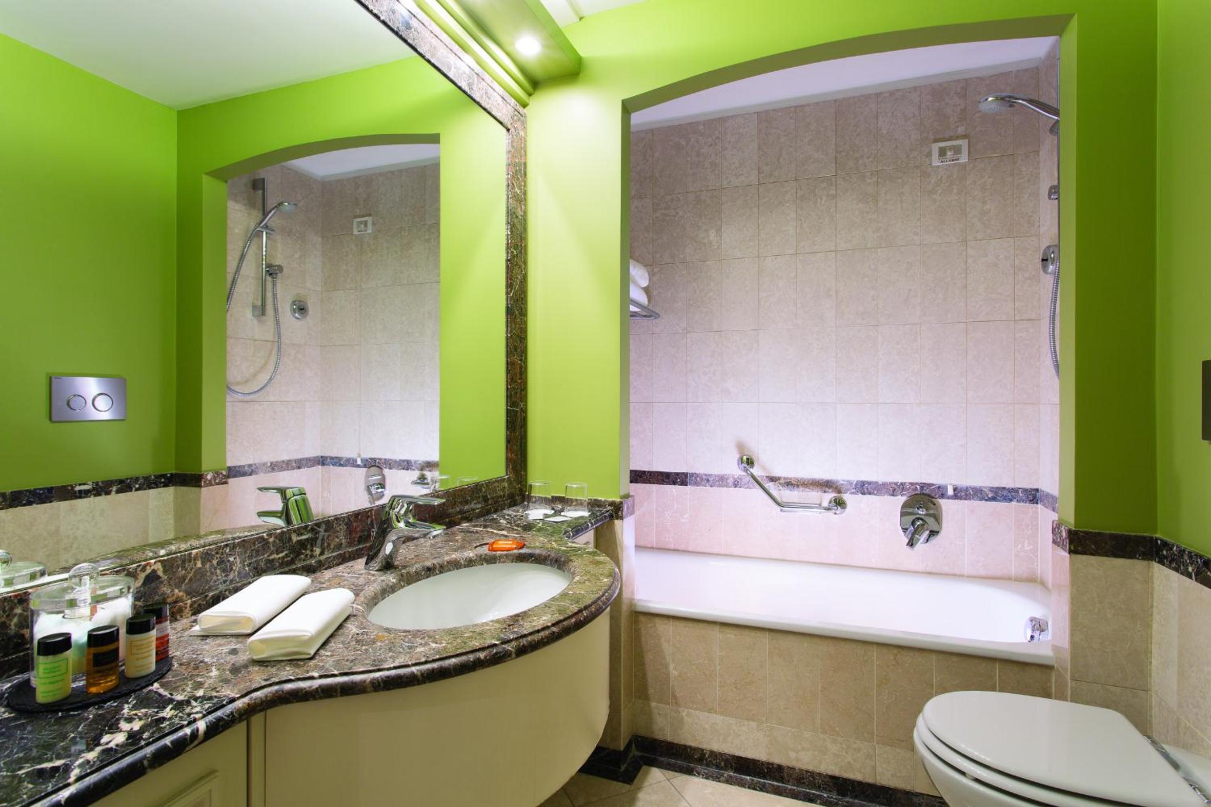 Indulge in our elegantly decorated rooms, featuring modern English style decor, air conditioning, electronic safe, and luxurious marble bathrooms for a comfortable stay.