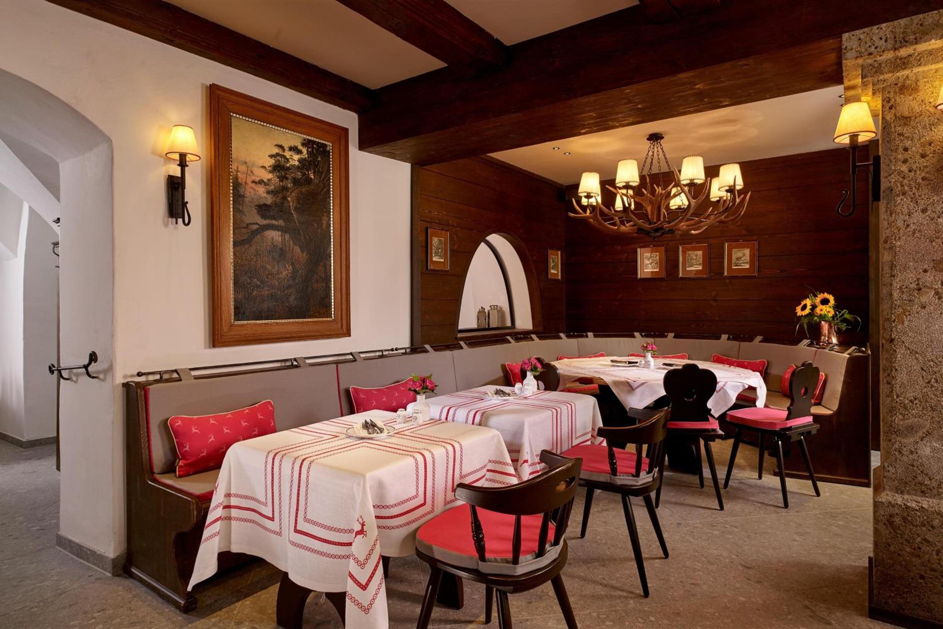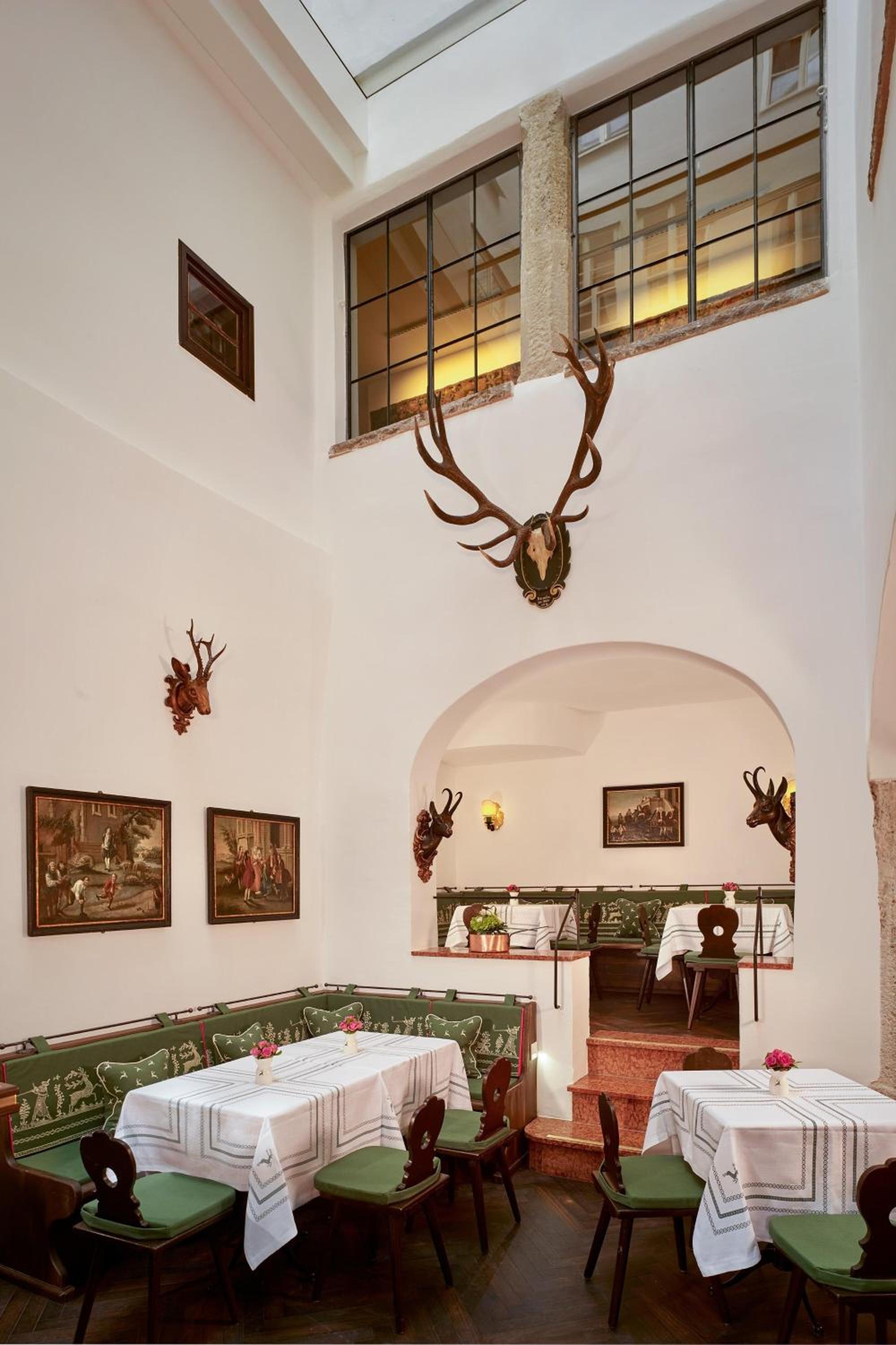 In this historical haven, every room exudes elegance and warmth. The genteel rooms feature minibars, sitting areas, flat-screen TVs, and complimentary Wi-Fi. If you’re looking for an extra touch of luxury, the upgraded rooms and suites offer additional bedrooms, dressing rooms, or even dual bathrooms. Every inch of the hotel, including its 70 guest rooms and suites, has been thoughtfully renovated in 2019 to maintain its rich historical charm while catering to modern comfort and luxury. Original antiques and handmade Salzburg-style decor embellish its interior, paying homage to the 600 years of history that the hotel proudly represents.