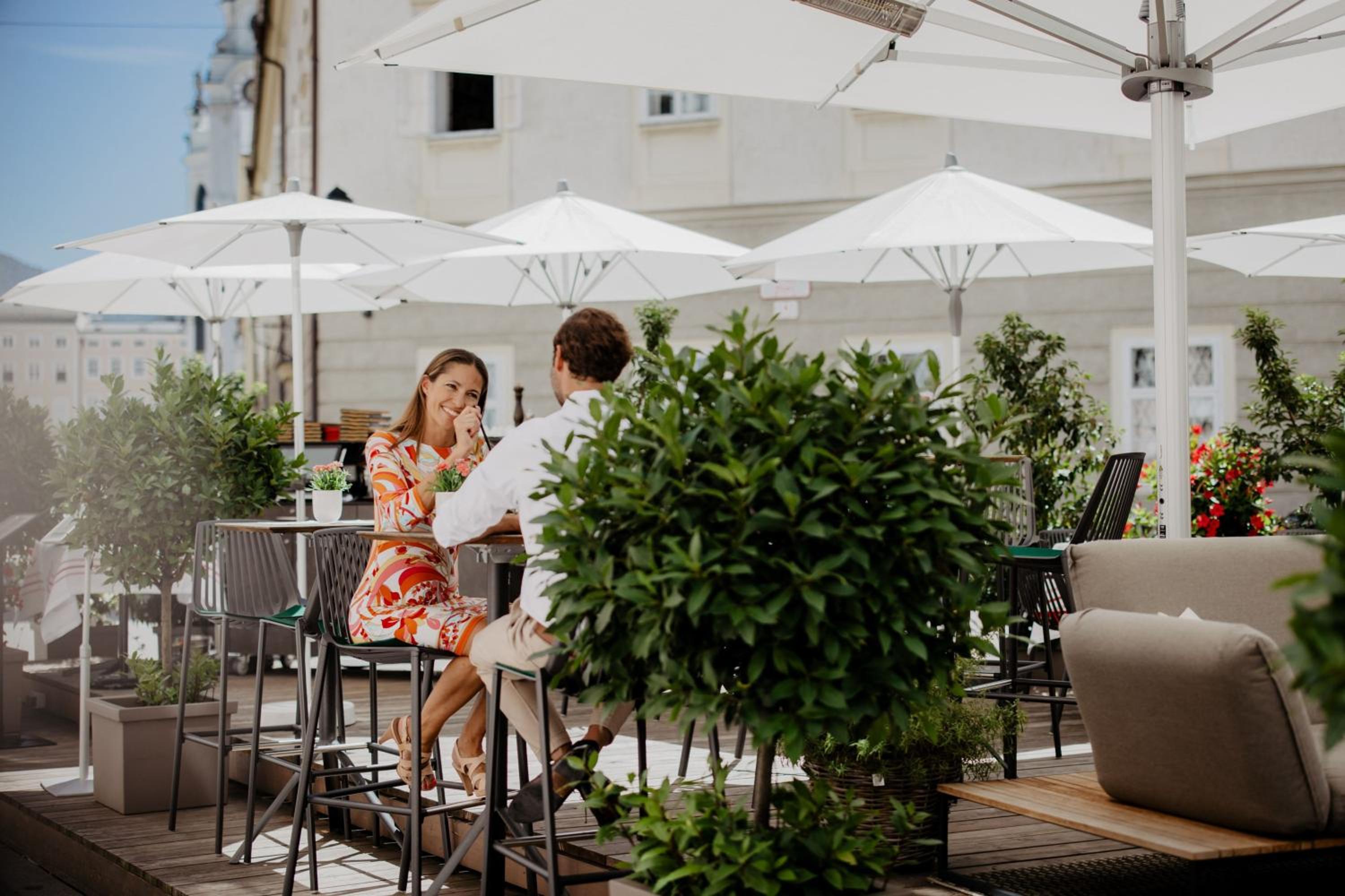 The Hotel Goldener Hirsch boasts two upscale restaurants, both perfect for a romantic dinner for two. The first restaurant, adorned with vaulted ceilings, is internationally celebrated for its traditional, fine Austrian cuisine. The second restaurant, Herzl, is not just a dining spot but also a cultural landmark where the lives of the hotel guests and local residents intertwine. To wind down after a day of exploring Salzburg, head to the relaxed bar with high ceilings and captivating decor. Whether you want to enjoy traditional cocktails or select from a range of Austrian and international wines, the bar’s covered inner courtyard provides the perfect ambiance.