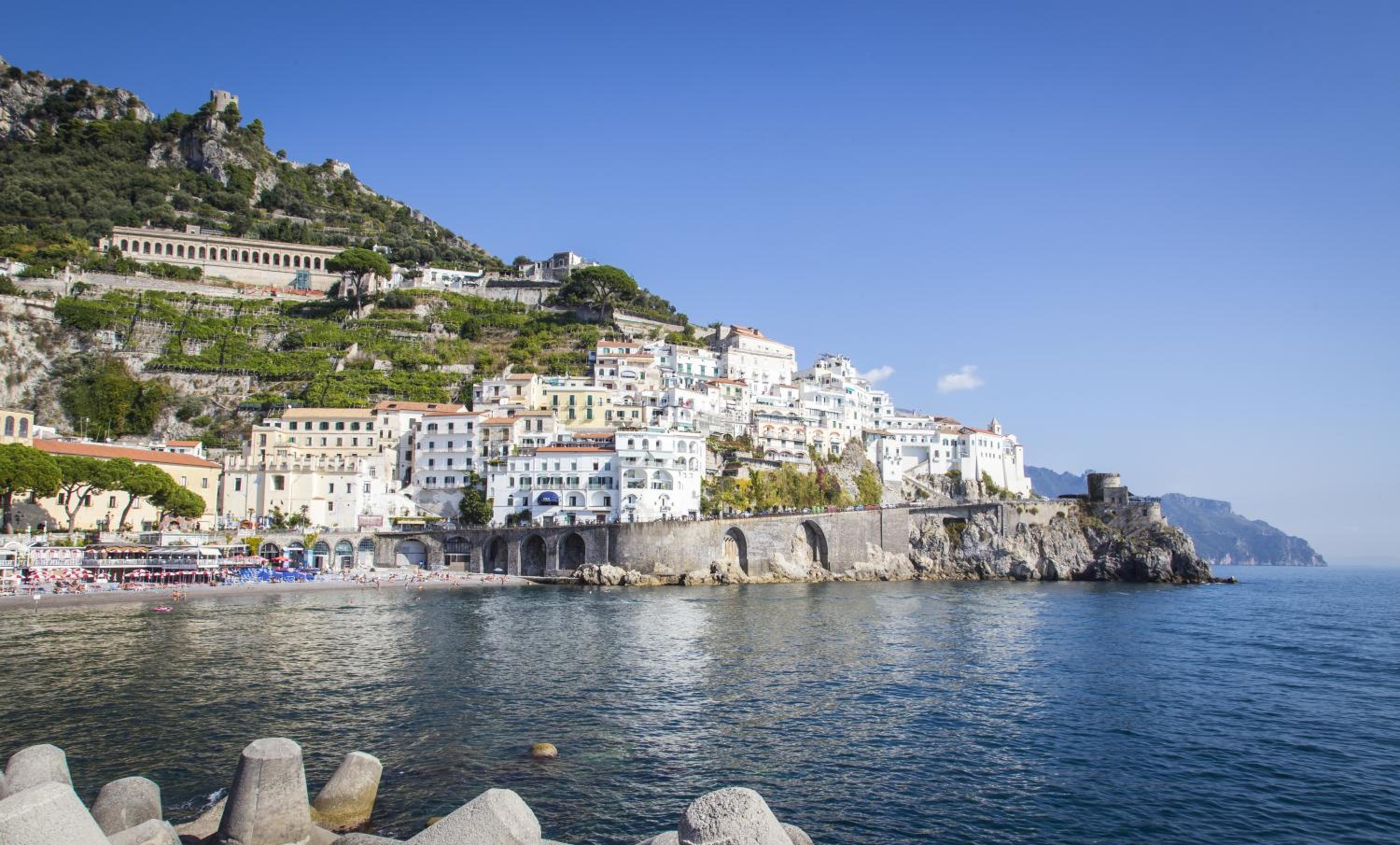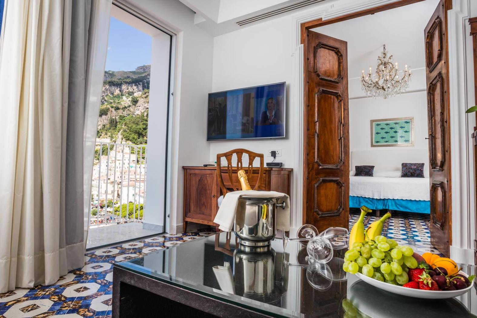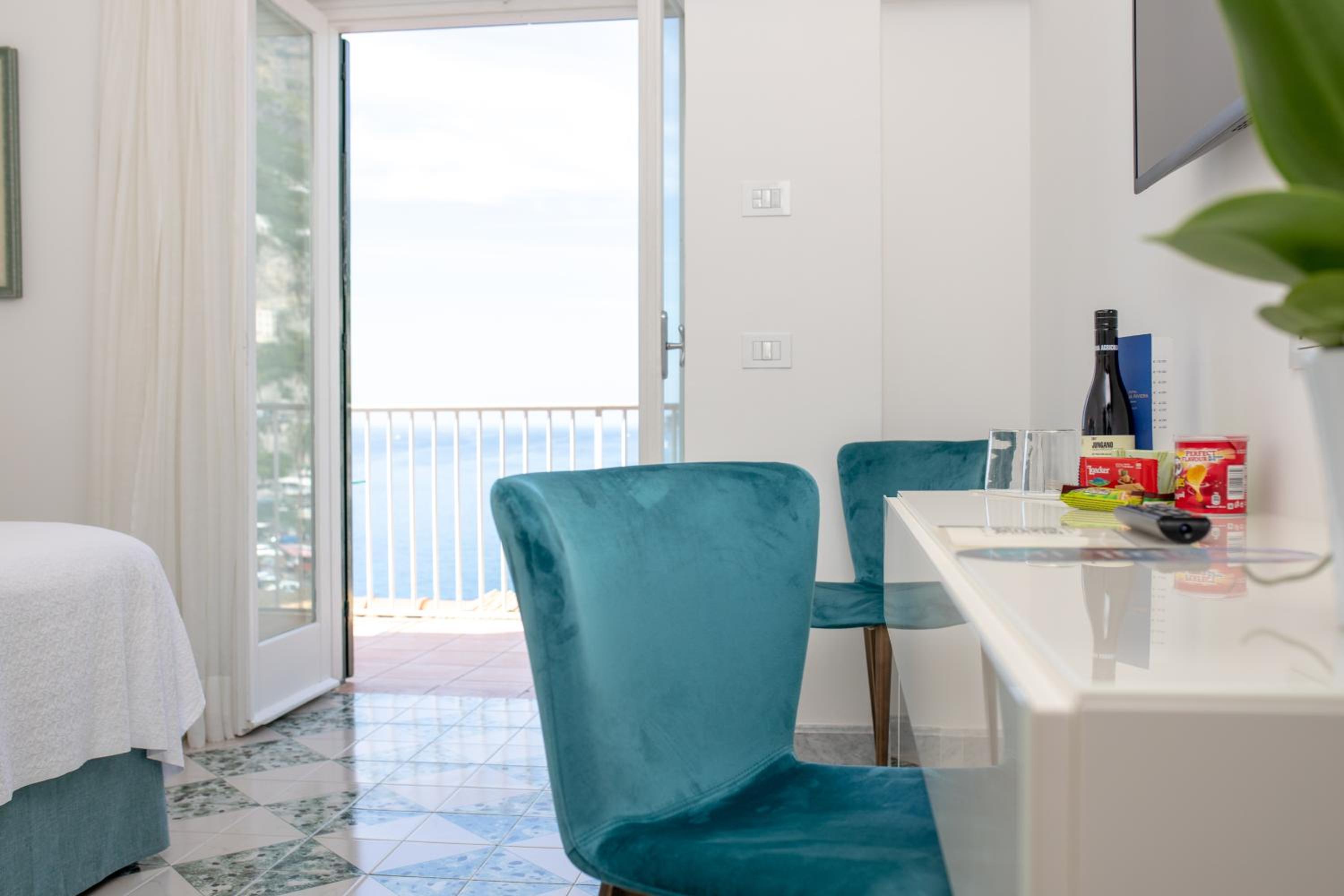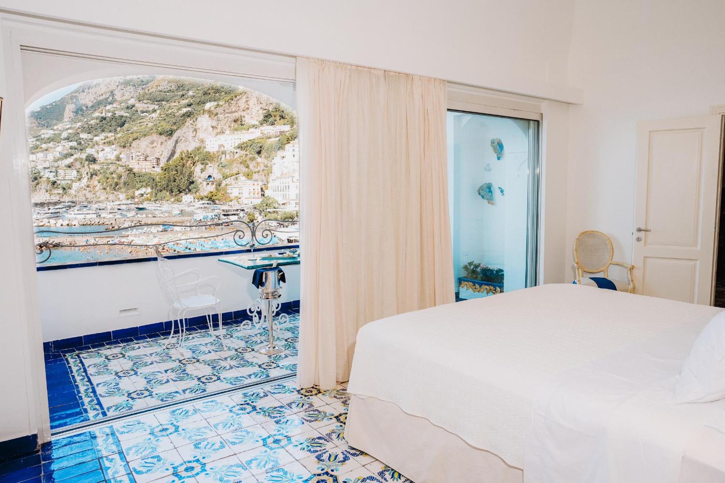 Wake up to the symphony of the sea in one of Hotel Marina Riviera’s 38 charming rooms, each adorned in quintessential Mediterranean style. From the private balcony of your standard, deluxe, junior suite, or suite, behold the breathtaking vista of the Amalfi Coast. Gaze at the endless expanse of the Tyrrhenian Sea and the charming bay of Amalfi. This is your own private paradise.