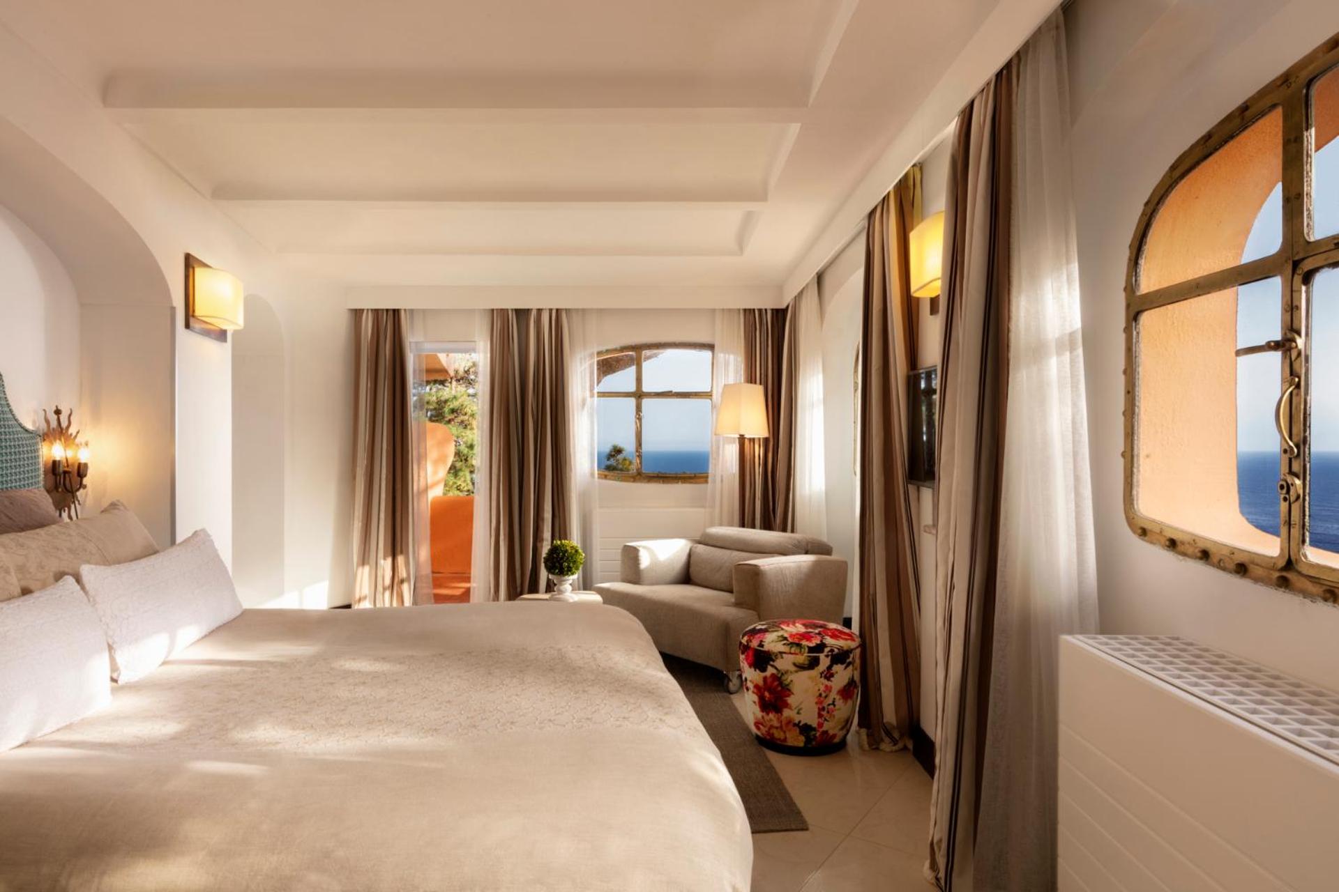 At Hotel Punta Tragara, indulge in the stunning panoramic views of Marina Piccola Bay from the comfort of your modern and spacious room. Enjoy complimentary wired internet and unique room designs, some overlooking the sea or garden.