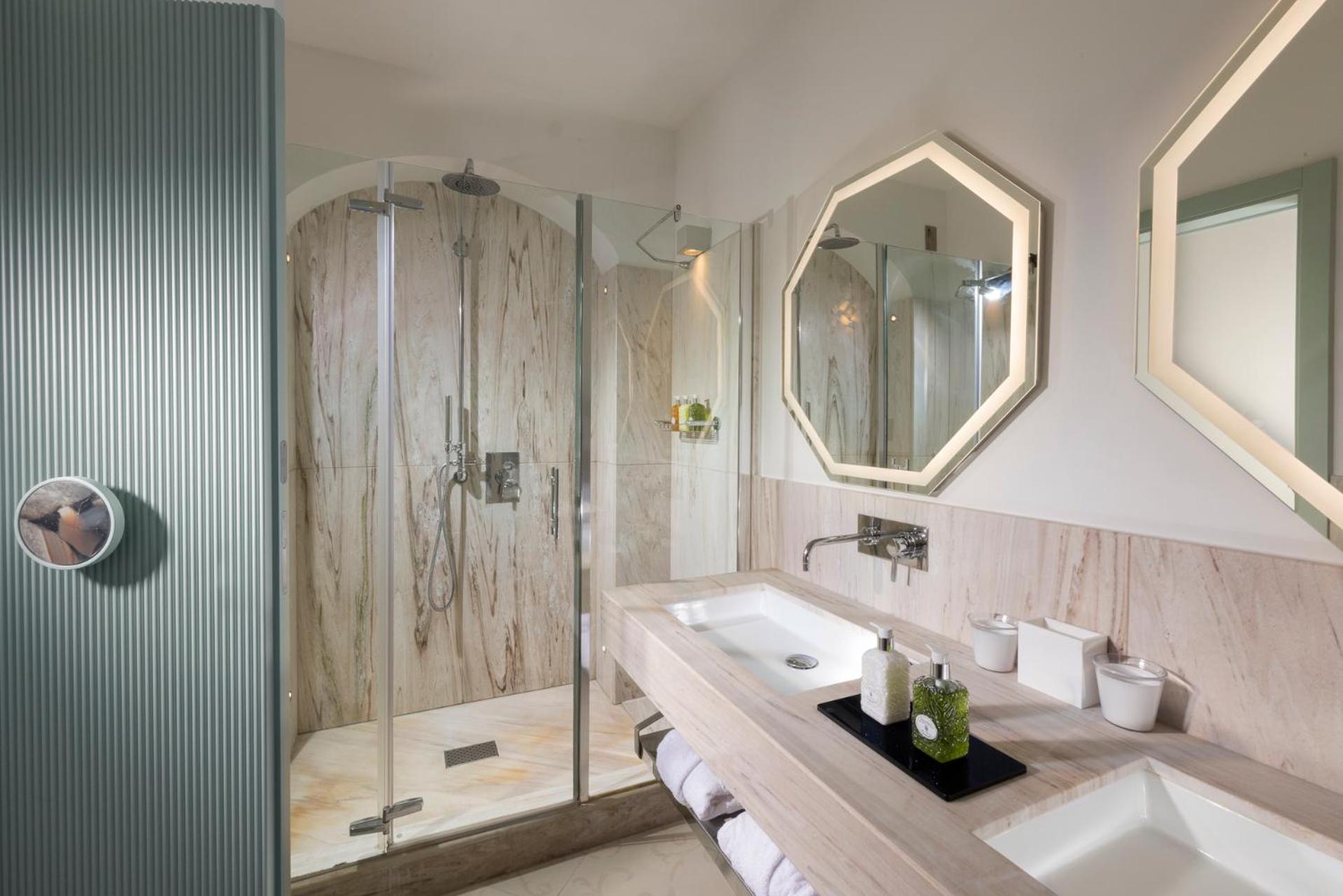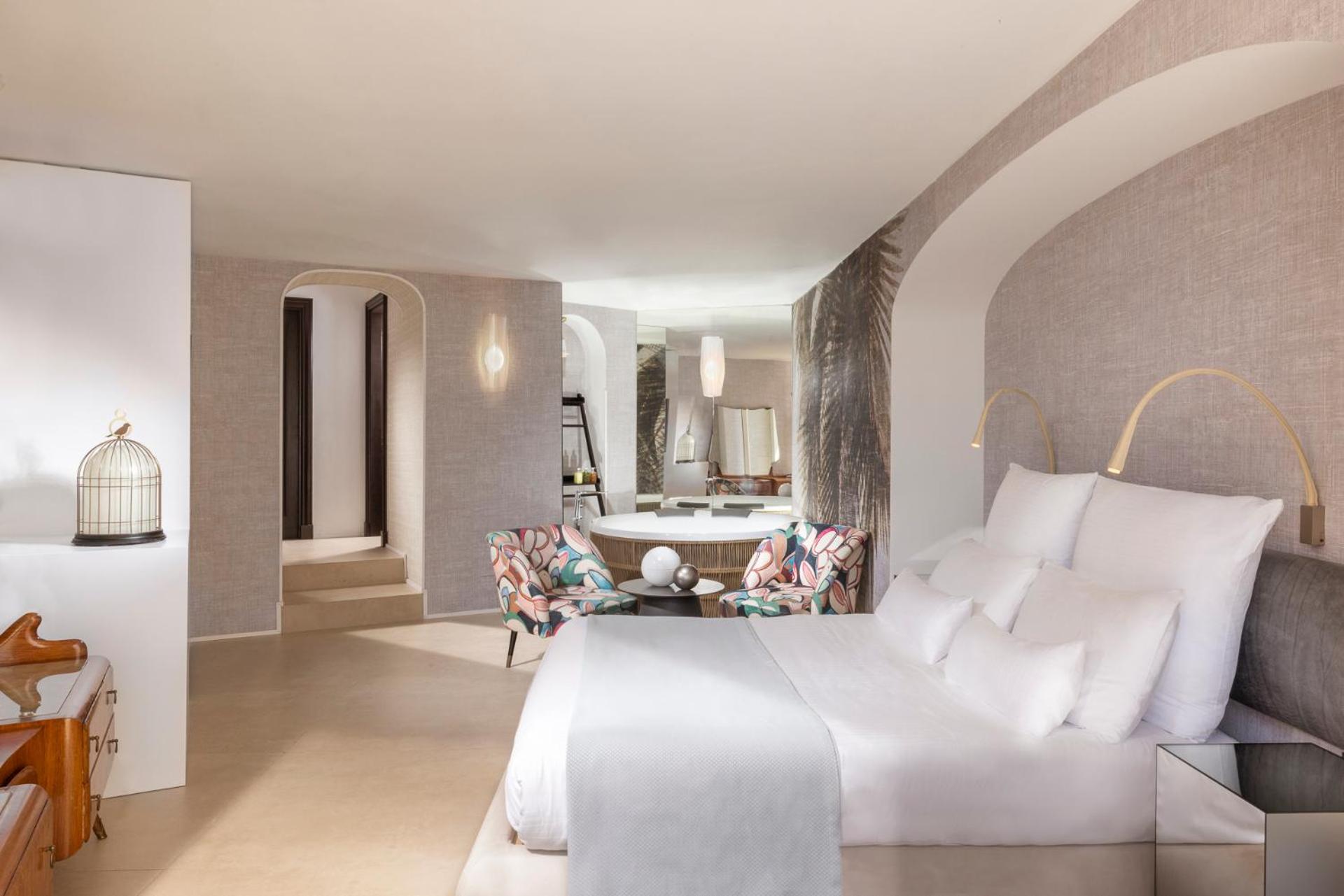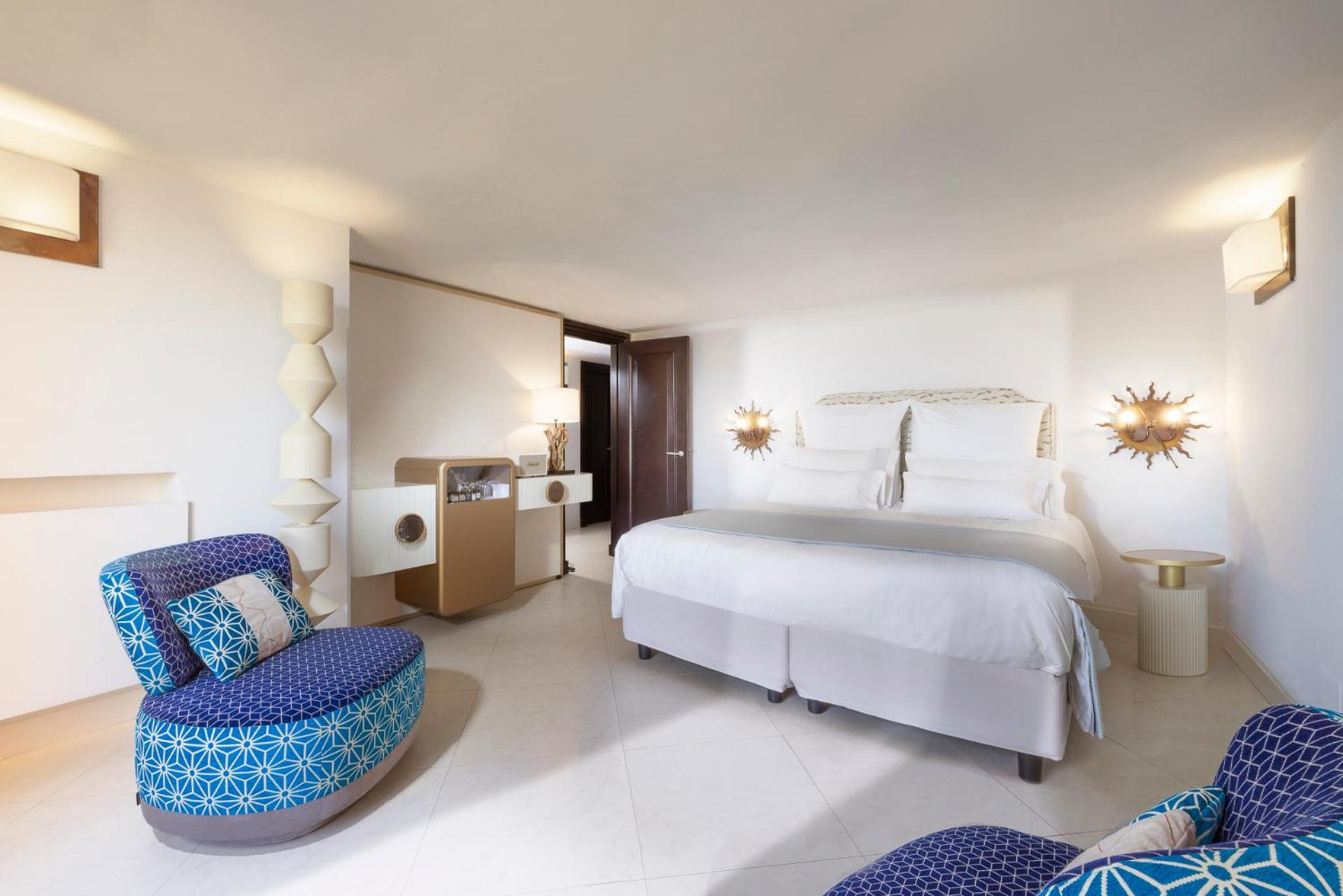 Each room of this upscale hotel is a testament to elegance and comfort. Enjoy the convenience of Wi-Fi, the sophistication of marble bathrooms, and the luxury of private balconies or terraces. Some rooms even offer breathtaking views of the sea. For those craving extra space, the suites come with cozy living rooms, perfect for intimate conversations over a glass of wine.