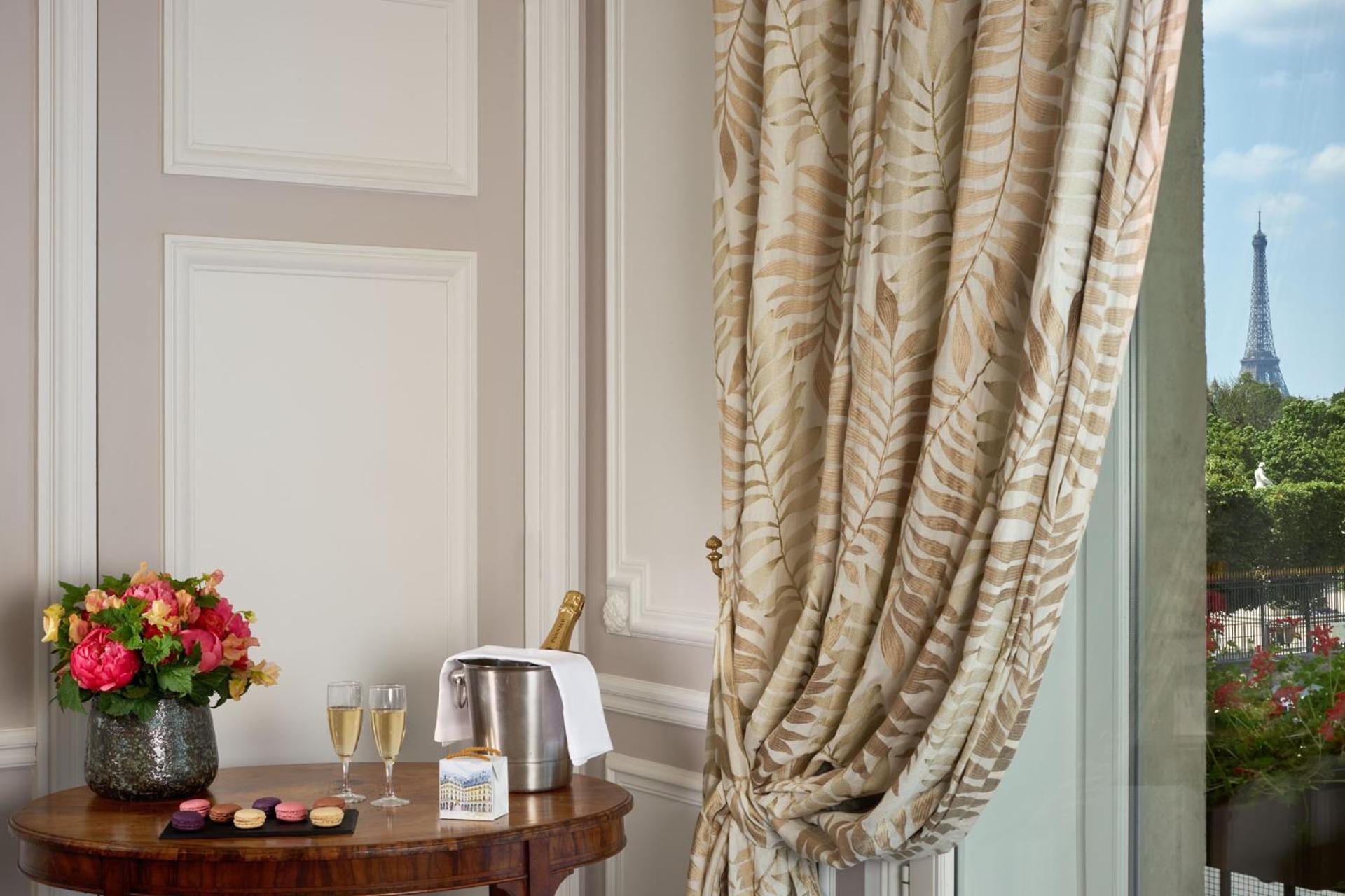 Indulge in luxury with air-conditioned rooms featuring flat-screen TVs, free WiFi, and picturesque views of Tuileries Gardens and the Louvre. Enjoy the convenience of in-room coffee and tea facilities for a cozy stay.