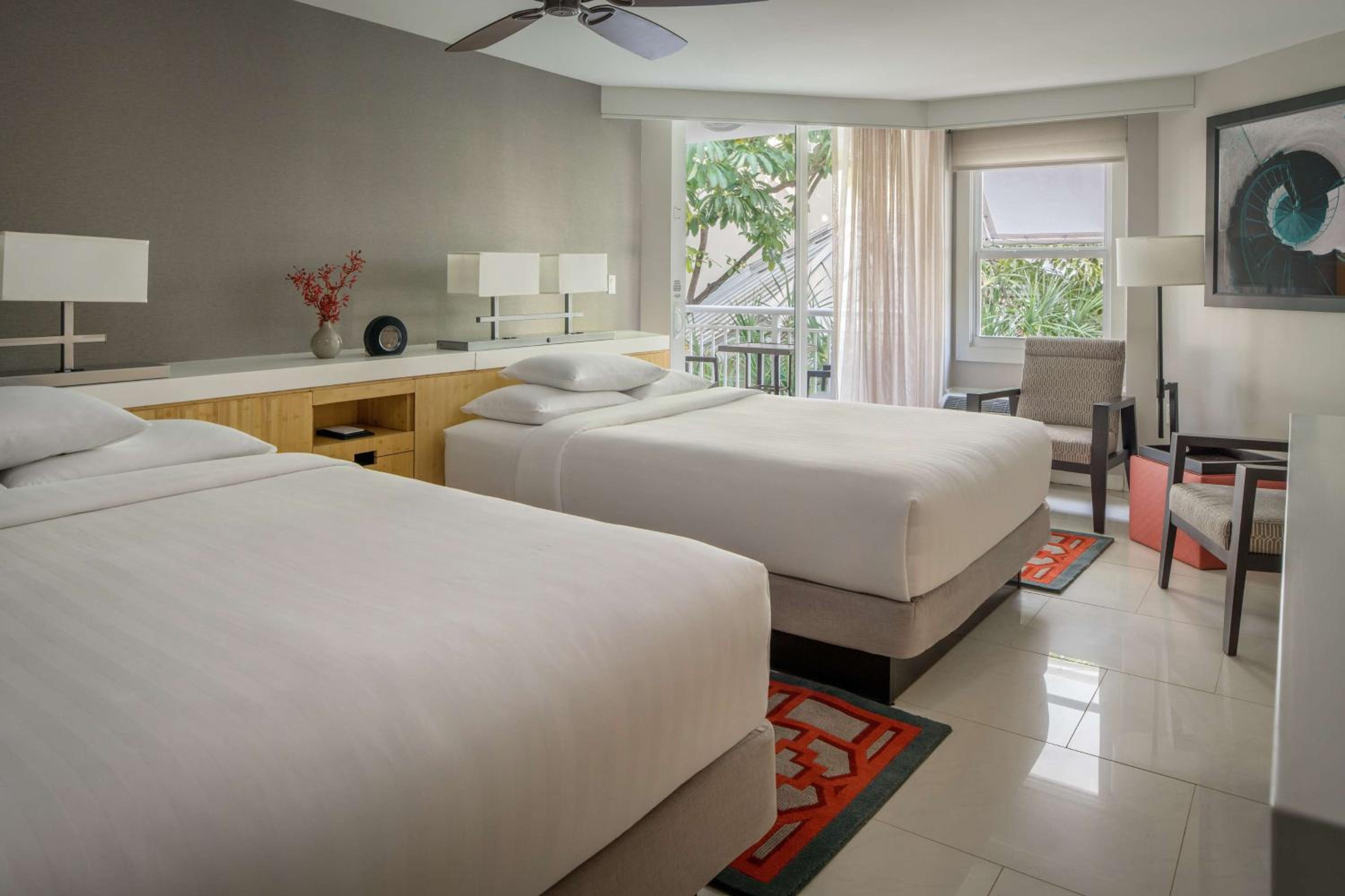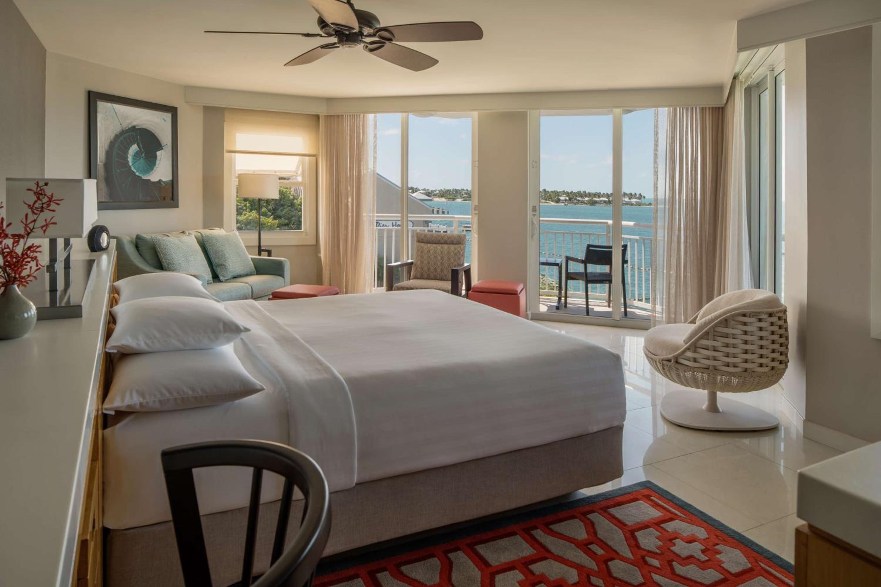 The light, airy decor of the rooms mixes seashore pastels with quirky beach and nautical accents. Cool tile floors and ceiling fans continue the tropical theme, and all rooms have individually-controlled air-conditioning and heat settings for your comfort. All rooms have furnished balconies, many with full or partial water views.