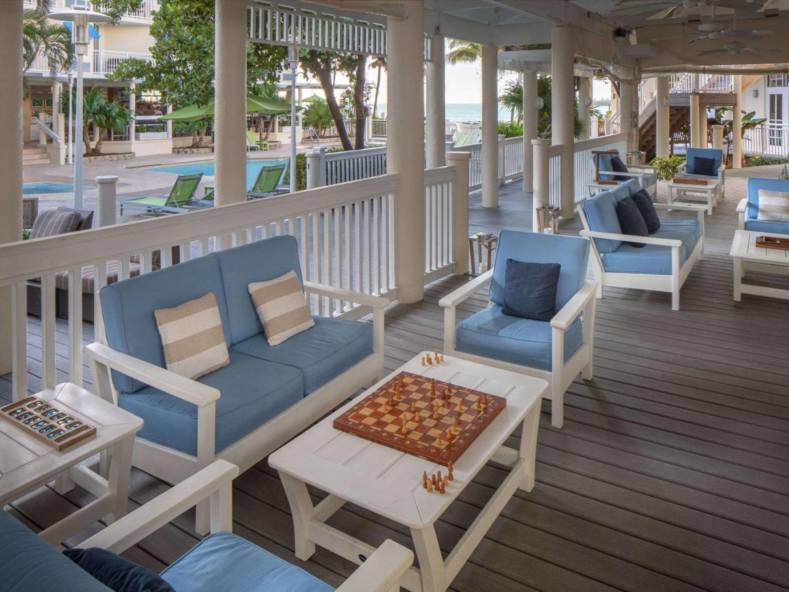 Oniste dining options include the seafood grill with a typical Florida menu of fresh seafood and produce and key lime pie. You can bring your catch from deep sea fishing to the grill for the Dock to Dish menu. Room service will bring you meals and snacks, and when you want some lively company, head down to the Blue Mojito, the beachside lounge.