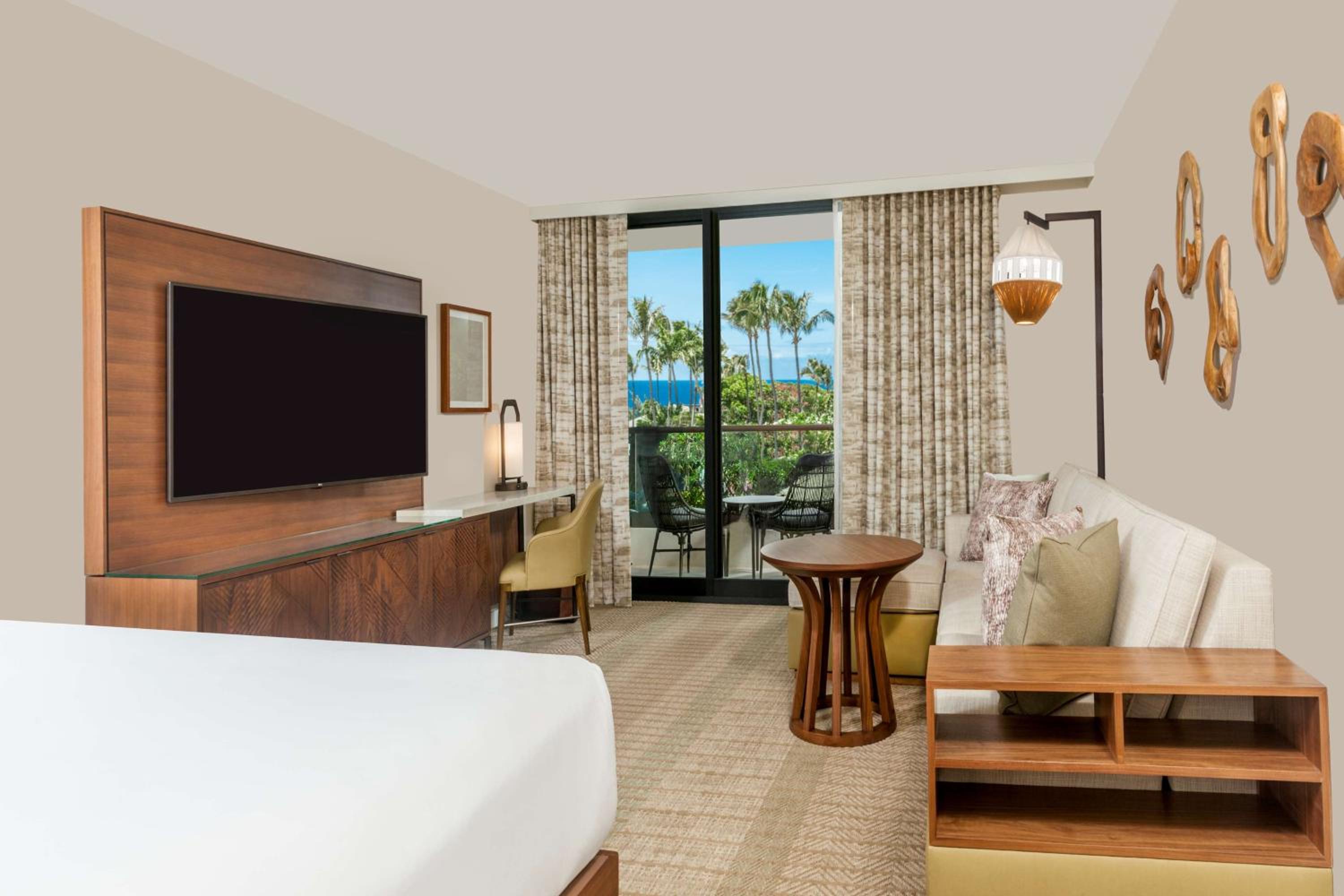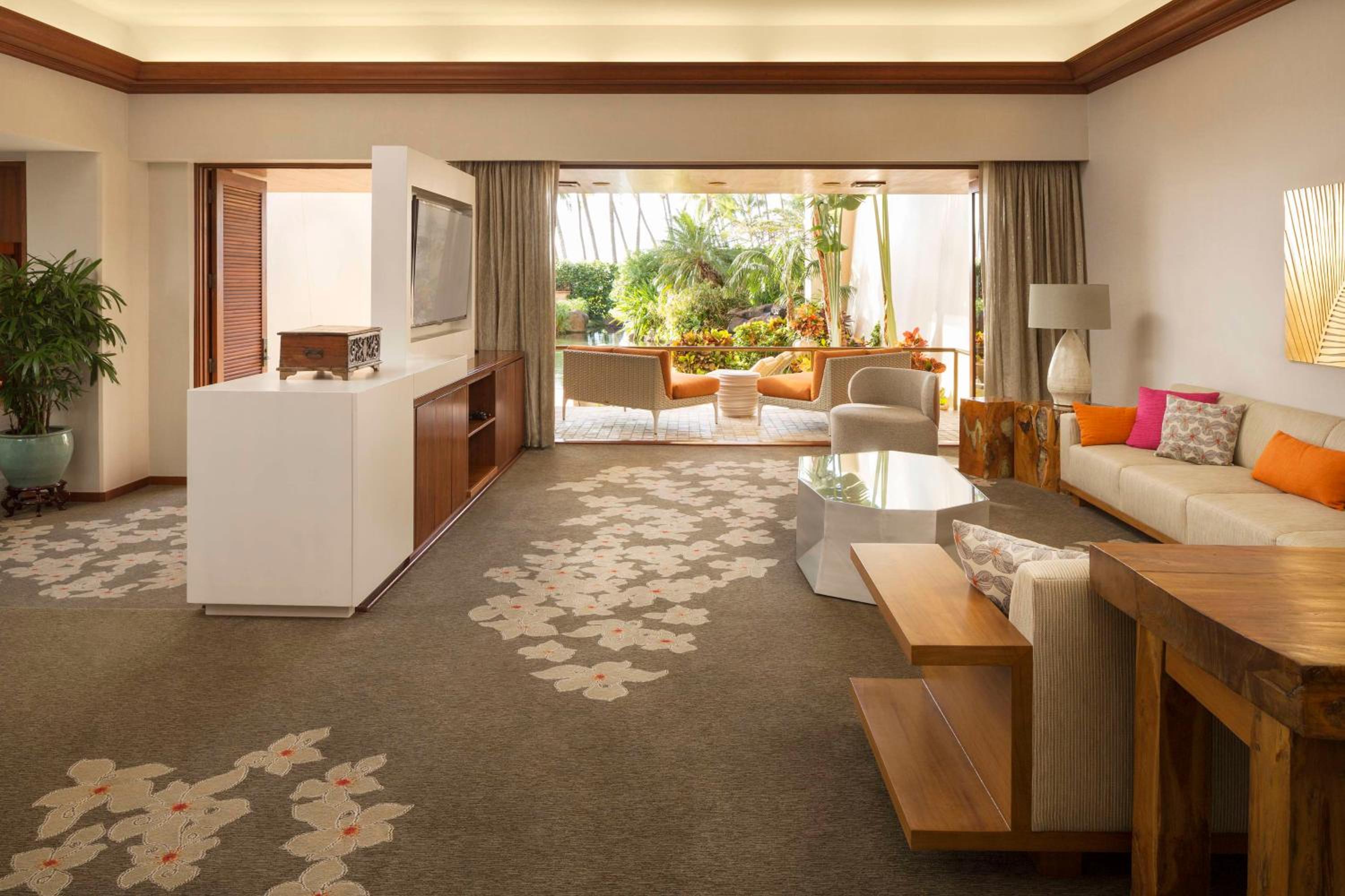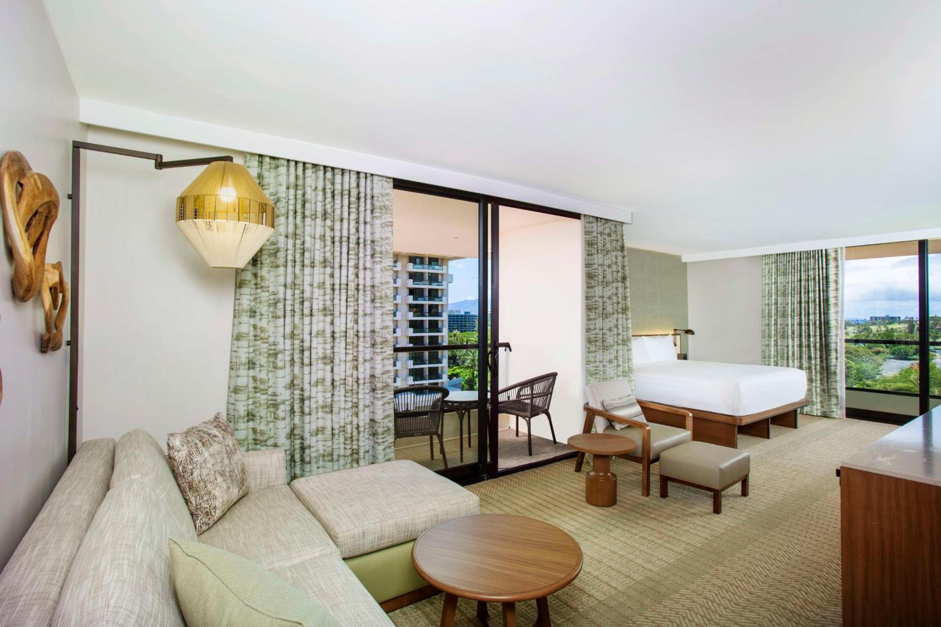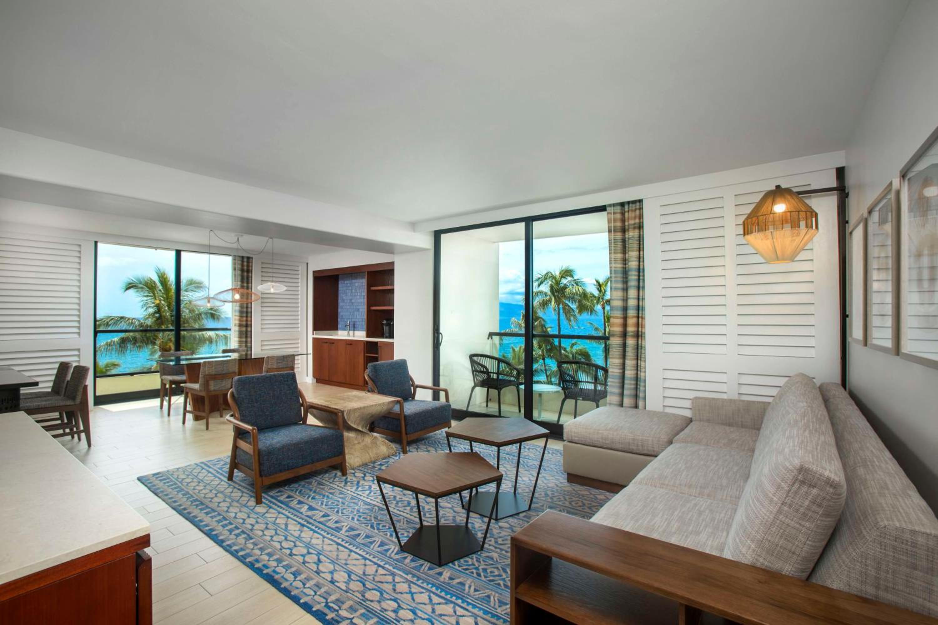 The resort’s contemporary Hawaiian-style rooms are designed to offer utmost comfort and a sense of place. Each of the 810 guestrooms and 31 suites, recently renovated, boasts private lanais and panoramic views to immerse you in the beauty of Maui. Along with the stunning vistas, these accommodations are equipped with conveniences such as coffeemakers, minifridges, flat-screen TVs, Wi-Fi, and iPod docks. For those desiring something extra, upgraded rooms come with breathtaking ocean views and room service.