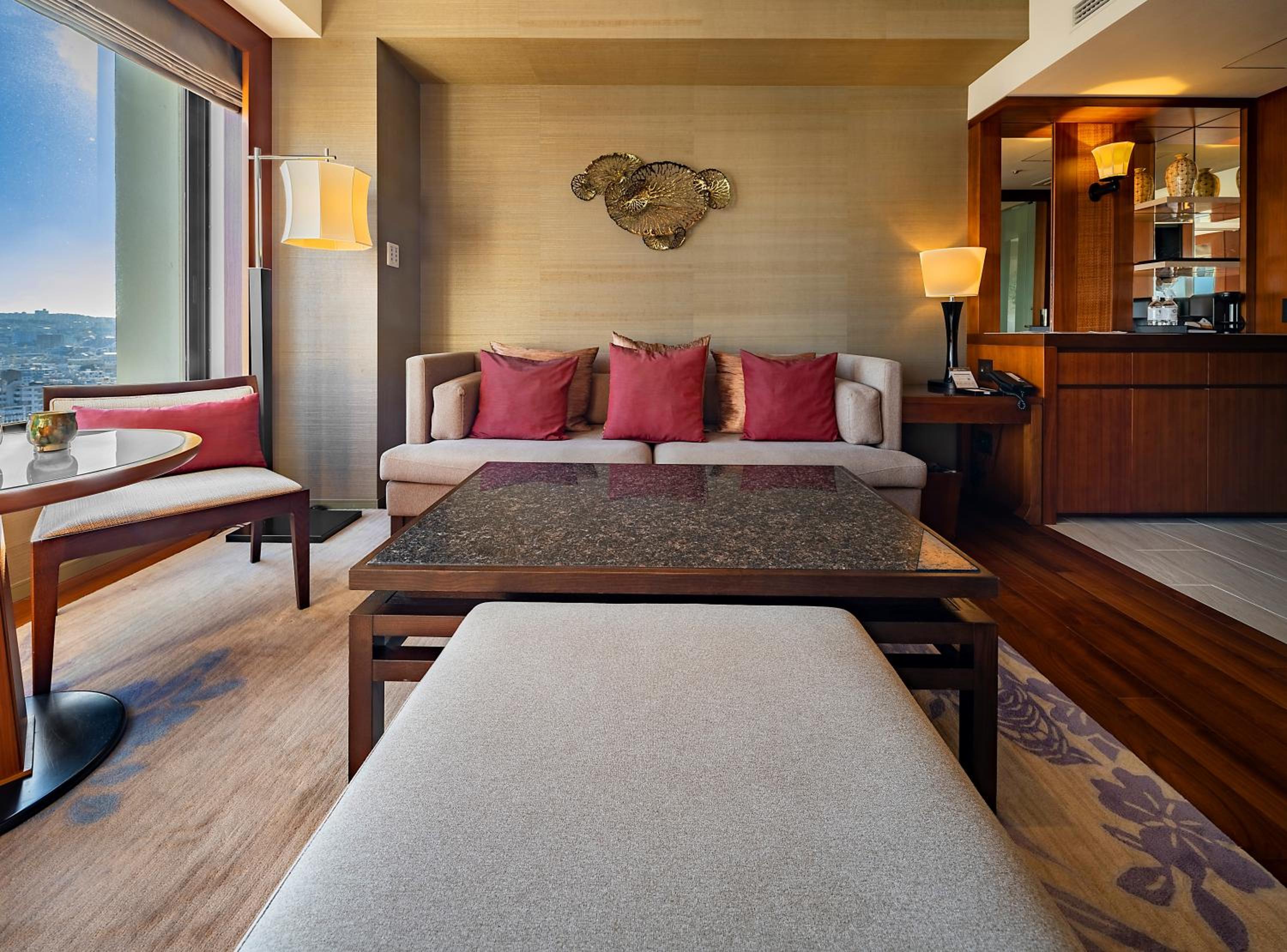 The Hyatt Regency Naha’s accommodations are made to satisfy even the most picky visitors. A variety of elegantly decorated rooms and suites that combine modern luxury with Japanese charm are available for honeymooners to select from. The pleasant ambiance that is created by the luxurious furnishings and calm color schemes is ideal for a romantic getaway. While some rooms enjoy panoramic views of Naha’s bustling cityscape, others offer a calm haven with views of the hotel’s well-kept gardens.