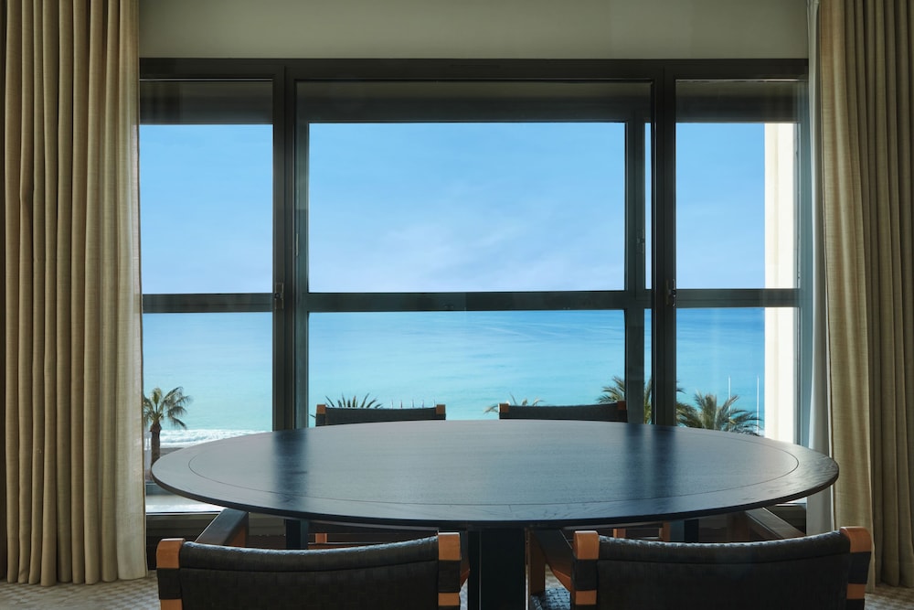 Every corner of the Hyatt Regency Nice Palais de la Mediterranee offers a visual treat. The polished rooms, boasting city or mountain views, are designed with a keen eye for detail and equipped with all modern amenities including free Wi-Fi, flat-screen TVs, iPod docks, and marble bathrooms. For those who crave an extra dash of luxury, upgraded rooms with balconies and Nespresso machines, some offering sea views, are also available. The suites, with separate living areas, are perfect for couples seeking utmost privacy and comfort.