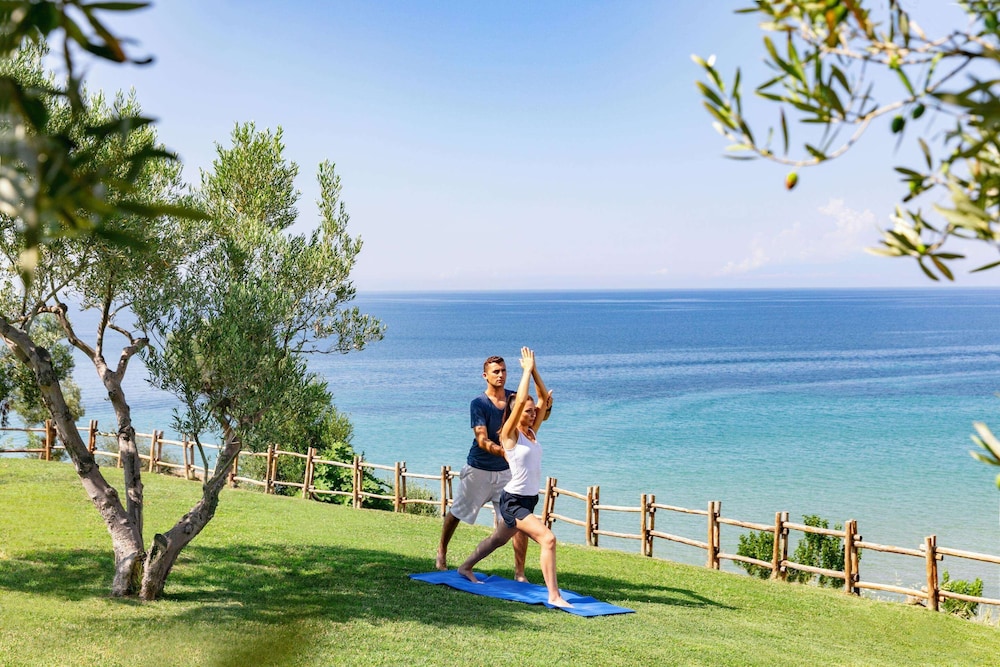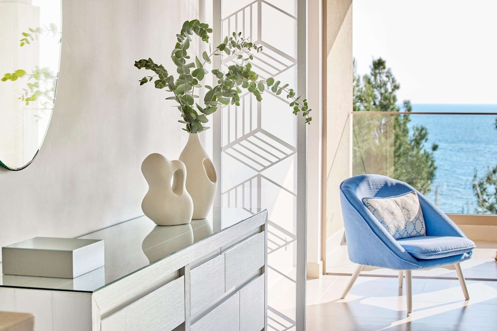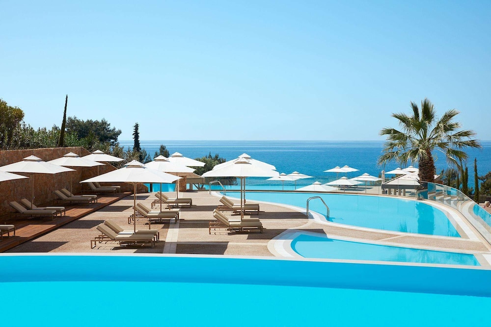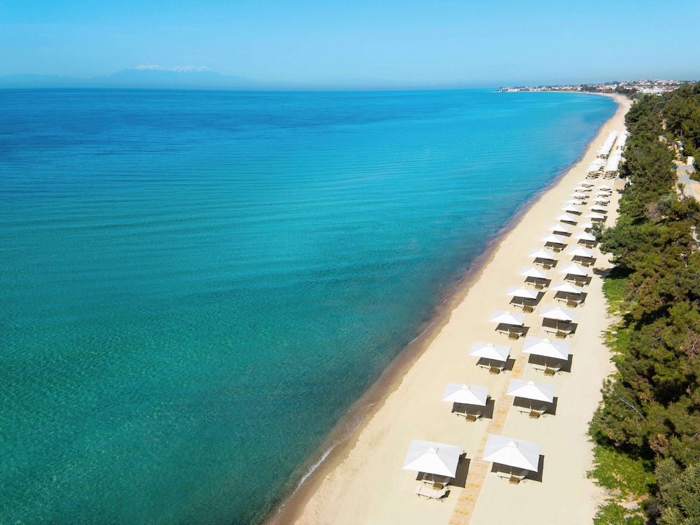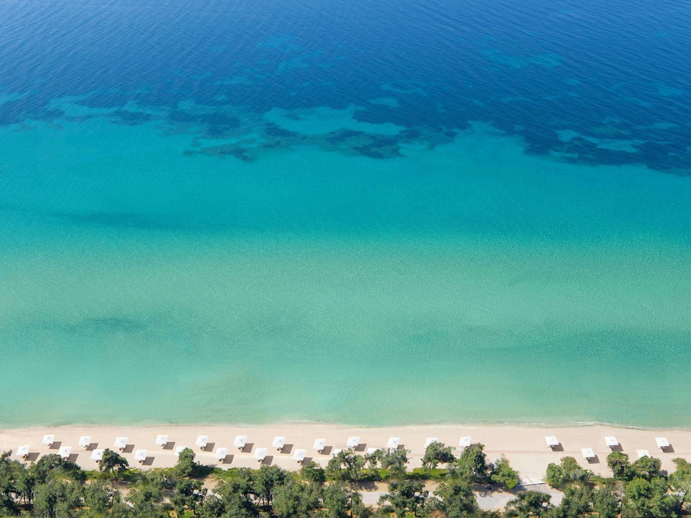 Perched above the glistening expanse of the Aegean Sea, Ikos Oceania presents a haven of luxury and romance, a mere 30-minute journey from Thessaloniki International Airport. The resort’s crown jewel is its sprawling 350-meter natural sandy beach, gracefully embraced by pine, olive, and cypress trees. Amidst the meticulously manicured 15-acre gardens, a world of elegance unfolds, with spacious guest rooms and suites that offer breathtaking panoramic sea views, framed by the majestic Mount Olympus on the horizon.