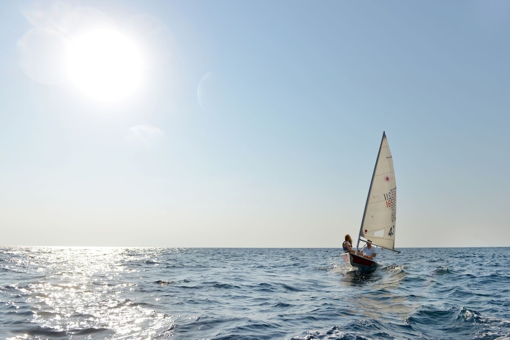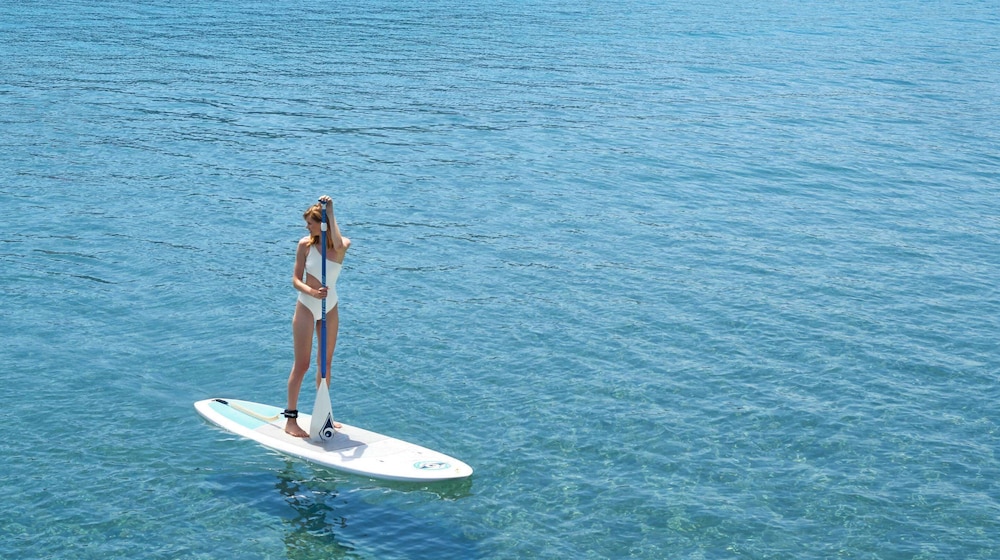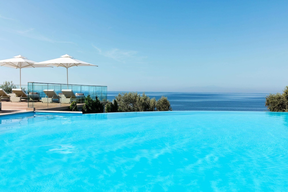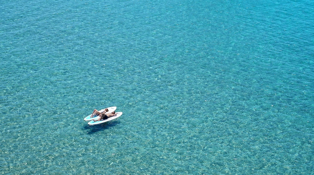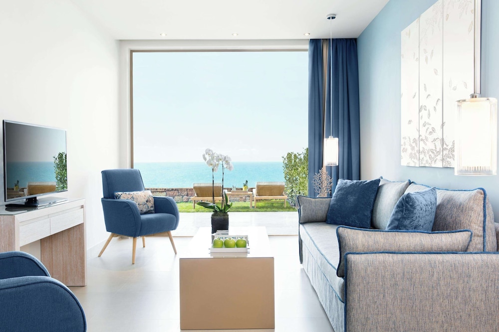 Perched above the glistening expanse of the Aegean Sea, Ikos Oceania presents a haven of luxury and romance, a mere 30-minute journey from Thessaloniki International Airport. The resort’s crown jewel is its sprawling 350-meter natural sandy beach, gracefully embraced by pine, olive, and cypress trees. Amidst the meticulously manicured 15-acre gardens, a world of elegance unfolds, with spacious guest rooms and suites that offer breathtaking panoramic sea views, framed by the majestic Mount Olympus on the horizon.