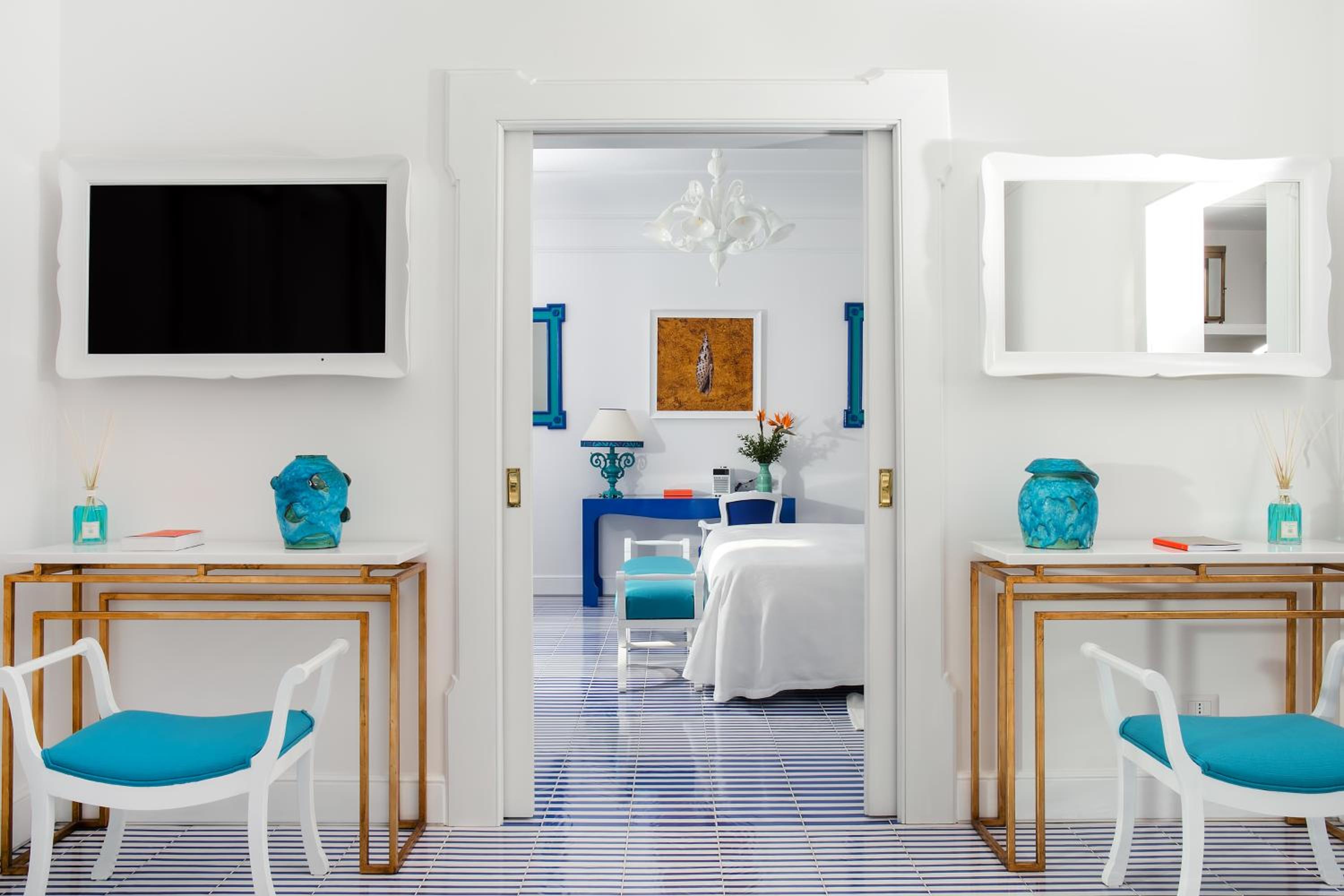 Relax in elegantly furnished rooms with a terrace and sea views, equipped with bathrobes, slippers, and a flat-screen TV. Some rooms even feature a stylish design sofa or chair for added comfort.