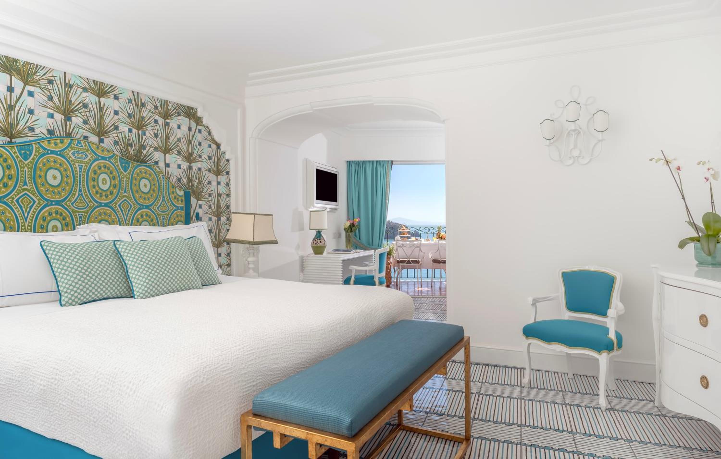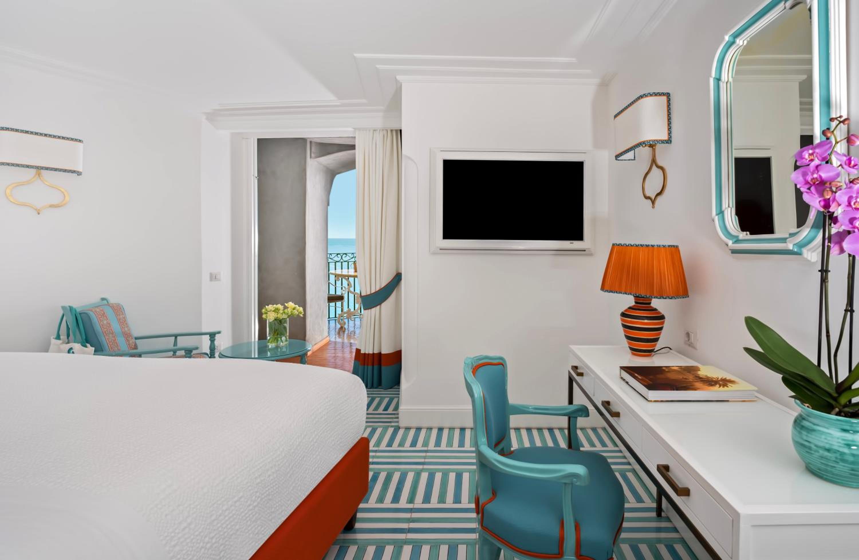 Built into the rock, this hotel offers panoramic terraces that overlook Positano and the Coast, offering a stunning backdrop for honeymoon photos. Each guest room is uniquely decorated and features a private terrace adorned with sophisticated local style elements like hand-painted ceramic tiles and furniture upholstered in sumptuous fabrics.