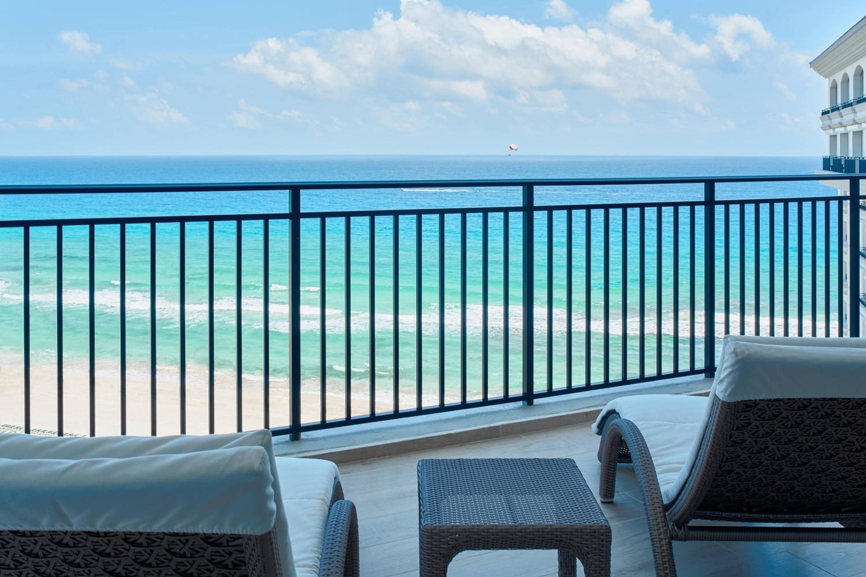 Beachfront Balconies for Serene Relaxation: Unwind on your private balcony overlooking the turquoise waters, a perfect spot to enjoy the beauty of Cancun's beachfront.