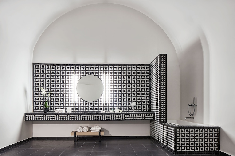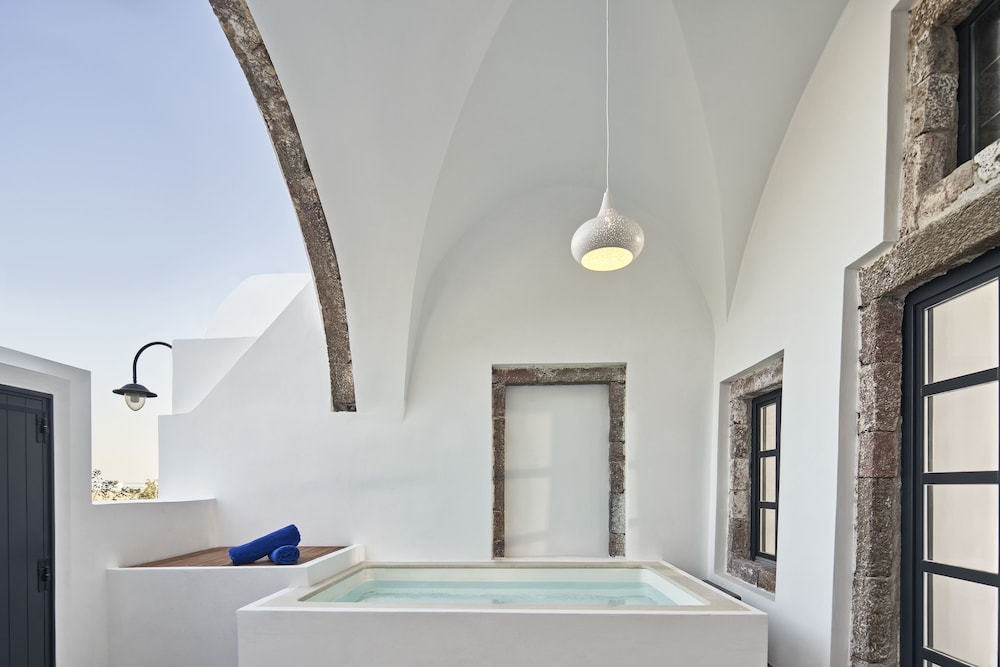 Fira’s old Venetian neighborhood, a witness to countless love stories, serves as the enchanting backdrop for the Katikies Garden. The hotel stands proudly on the grounds of a former Monastery, its architecture a heartfelt tribute to the historic building’s past. As you walk along flourishing alleys, past whispering fountains and blooming gardens, you’ll feel the weight of centuries and the hushed promise of unforgettable moments to come.