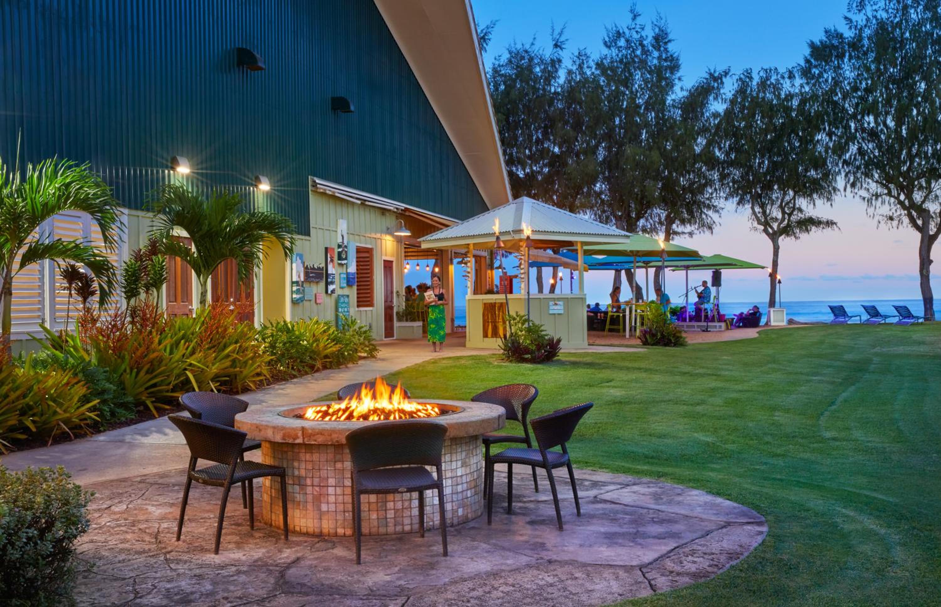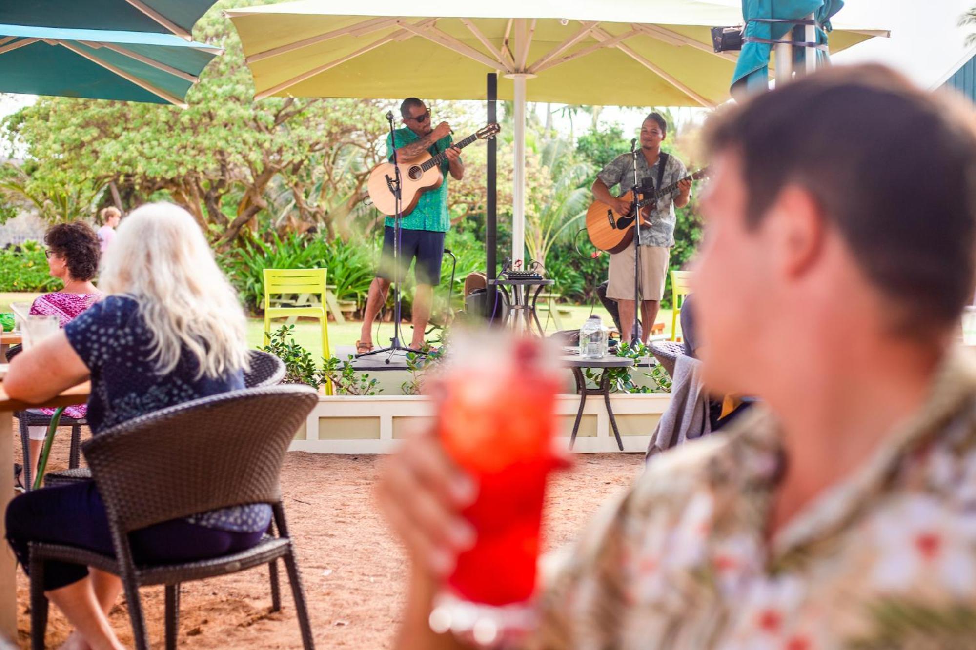 The resort’s guest room accommodations are a perfect blend of sleek, retro-modern designs and vibrant island colors. The rooms are equipped with mini-refrigerators, Keurig coffee makers, and private lanais. They offer beautiful views of the mountain, garden, pool or ocean. The daily Hospitality Fee lets guests enjoy amenities such as in-room coffee, outdoor yoga classes, and internet access throughout the hotel. Local and toll-free phone calls, use of beach towels and chairs, hot tub, luggage service and self-parking are also included.