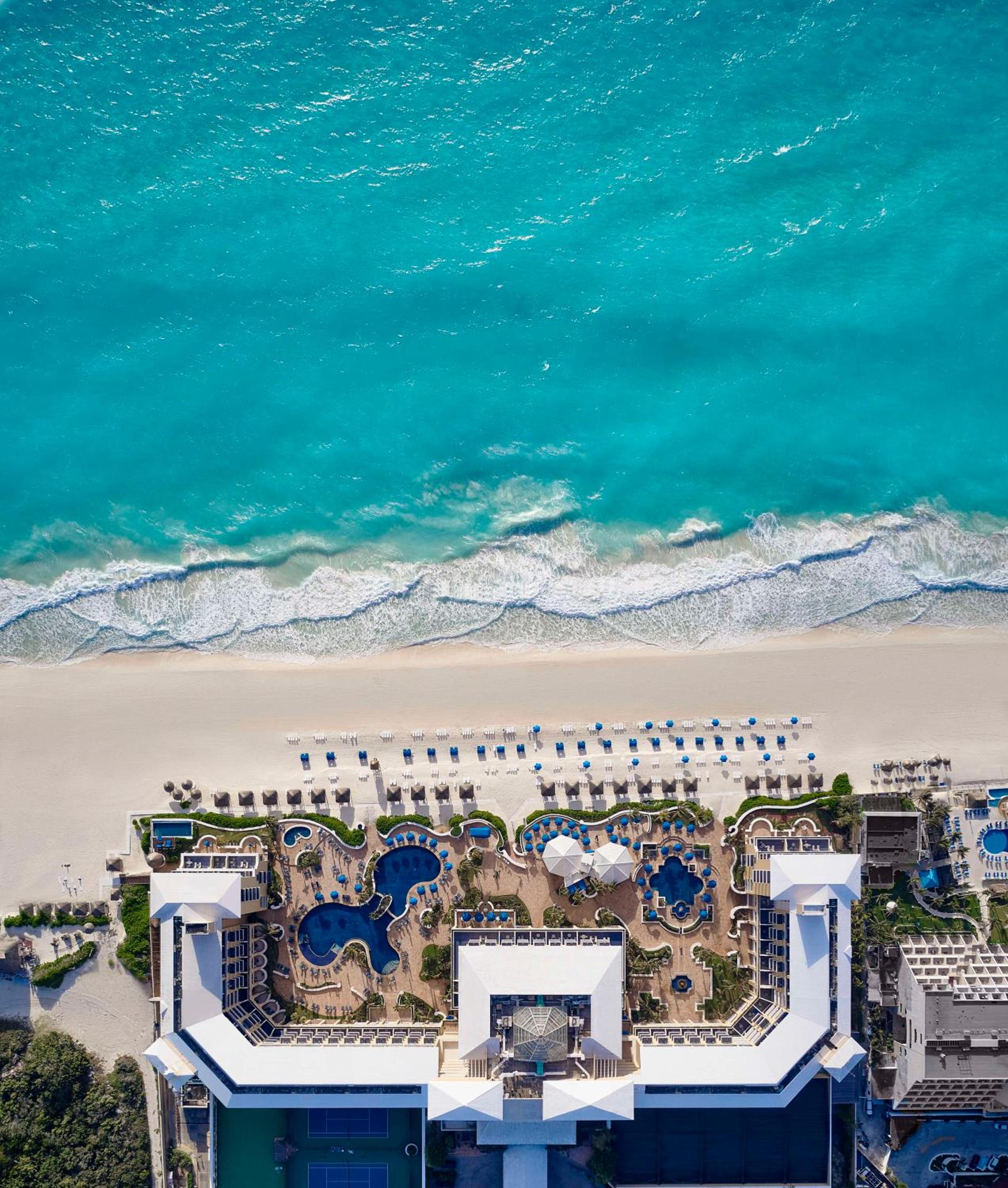 Conveniently located just 20 minutes from Cancun International Airport, the hotel offers seamless airport transfers and easy access to nearby attractions like Aquaworld. Experience luxury and comfort at its finest at the Kempinski Hotel Cancun.