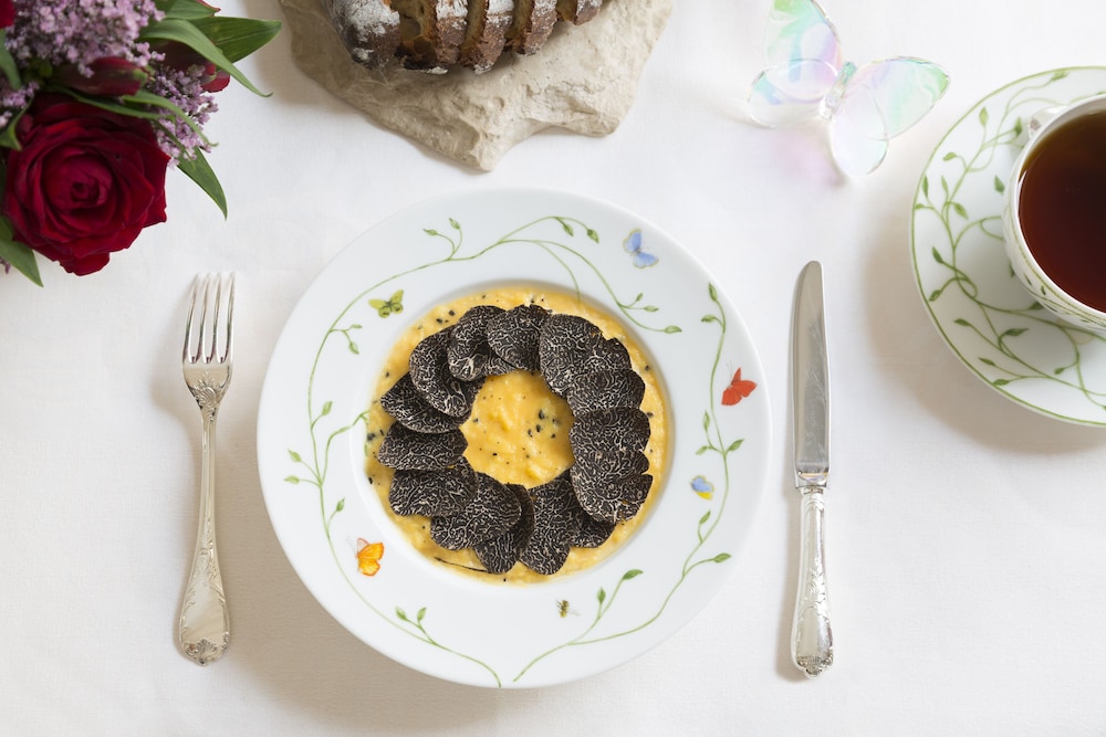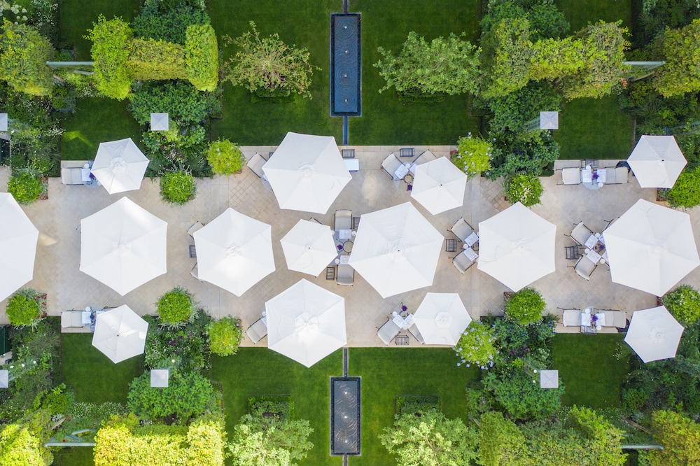 The hotel offers a chic spa, Spa Le Bristol by La Prairie, perfect for unwinding after a day of sightseeing. The indoor pool with city views offers a relaxing dip, while the rooftop terrace is a great spot for a romantic sunset. For those who enjoy a quiet moment amidst nature, the lush 13,000 square foot courtyard garden provides the perfect setting.